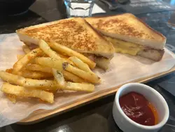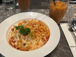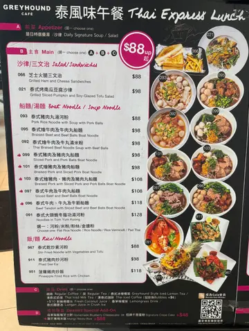 泰國過江龍 Greyhound Cafe 在香港設多間分店, 啟德體育園零售館分店距離主場館大約幾分鐘路程,作為時裝品牌Greyhound的延伸,裝潢時尚休閒,裝修風格和一般泰菜餐廳的強烈泰國民族風完全不一樣,餐廳環境寬敞開揚,遇上大型活動日子仲有宵夜食,開放至1AM,餐牌款式繁多,包羅萬有,集齊前菜、泰式小食、湯、沙律、西餐、粉麵飯、主食、鍋物、咖喱、海鮮、蔬菜、甜品等等。脆炸粟米餅配甜酸醬 外層炸得金黃脆口,內餡扎實彈牙,混合粒粒粟米更有咬口,蘸上酸酸甜甜的泰式醬汁醒胃之餘,又可中和炸物的油膩感。香辣金不換牛肉飯 牛肉切粒肉質軟嫩,加入泰國金不換羅勒葉、蒜蓉和辣椒翻炒,惹味微辣有後勁,半熟太陽蛋流出蛋漿,讓飯粒吸收香濃蛋汁,拌飯尤佳。招牌椰子千層蛋糕 千層蛋糕餅皮口感輕薄軟綿,有適度的濕潤感,層層疊疊包裹著軟滑的椰子忌廉和清甜椰子果肉。開心果配蘋果慕絲蛋糕 外層開心果慕絲趕上近期大熱的開心果熱潮,中心位有蘋果果肉,中和甜度。日式焦糖布丁芝士蛋糕 將兩款甜品合而為一,上層為質地Q彈細滑的焦糖布甸,下層則是鬆軟綿密的芝士蛋糕。泰式凍珍珠奶茶 橘褐色的泰式奶茶口感順滑不澀口,具有茶葉香及煉乳的甜,混入煙韌彈牙的珍珠。…查看更多