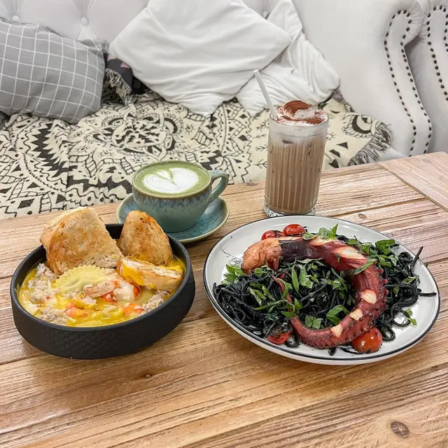 三訪 - 窮撚賣咖啡☕️原來已經三訪呢間cafe 估唔到佢都仲幾受歡迎🤪 呢間cafe位於旺角通菜街 店內樓高兩層 環境好寬敞🥰 下層座位會比較逼 樓上會比較闊落 而且有梳發位😍 門口有個大大嘅「窮」字打卡位 夠哂搶鏡 好容易就會見到👍🏻 .佢最近多左手工意粉Menu 有10款選擇 都幾多👍🏻 價錢$128-$208不等 唔算太貴🤪 除左手工意粉 佢仲有小食、沙律、Toast等😋 🔹明太子蟹肉西班牙蛋餅🥚推介❤️ 一切開已經見到滿滿嘅明太子、蟹肉 加上舖面嘅蟹籽 食落好有鹹香👍🏻 蛋餅口感軟熟 蛋香十足 食落好滿足😋🔹南瓜海鮮意大利雲吞🥟南瓜湯口感唔會好杰身 味道偏甜😋 意大利雲吞好大隻 仲配埋幾片法包 夠哂飽肚🤪🔹慢煮原條八爪魚墨汁香辣意粉🍝原條八爪魚好搶鏡 口感微微煙韌 用刀切到👍🏻 墨汁意粉冇咩辣味 味道偏鹹🤪🔹玄米茶鮮奶🍵🔹濃爆72% REAL朱古力鮮奶🍫.整體✨ 呢間位於旺角通菜街嘅cafe開業多年 店內樓高兩層 門口有個大大嘅打卡位👍🏻 食物質素仍然保持到 特別推介明太子蟹肉西班牙蛋餅😋GRIND SIZE (旺角) · 🤝🏻🤪旺角通菜街10號地舖…查看更多