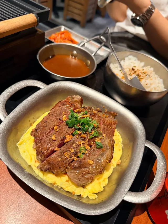 以體驗室🧪為名既燒肉店🔥,餐廳門面及店內風格以日式裝潢⛩️,使人感覺置身於日本居酒屋中,播著日本輕快歌曲🎼,感覺好溫馨~每款套餐包括珍珠白米飯🍚、滑炒玉子、蘭王蛋🥚蘿蔔蓉、山葵洋蔥漬物及昆布洋蔥湯大家必須試下山葵洋蔥漬物,感覺白雪雪,但入口有少許辛辣帶點酸醋味,洋蔥咬口脆,開胃十足😋🌟每款餐跟一款醬汁🥢辣香草蕃茄 🥢日式咖喱🥢漢堡汁🥢雙重芝士(+$10)講講佢地既雙重芝士🧀,老板都十分落本,用一大杯Cheddar cheese及Mozzarella淋上各款肉上面等五分鐘等溶後,職員再係上面加多轉Parmesan cheese,真係芝味十足,鐘意食既一定要試!!💥厚切牛舌芯配日式咖喱汁牛舌芯係厚切,超Juicy;口感軟淋彈牙,仲帶濃郁油香,慢燒保溫,KEEP住肉嫩配埋日式咖喱汁,味道跟薯片一樣味,就咁食或點配醬汁,可隨自己口味調配唔同風味💥手打漢堡大滿足🥢黑豚肉🥢日本免治雞肉🥢和牛漢堡⭐️和牛漢堡十分Juicy,而且做到外脆內爆汁,滲滿和牛油脂香⭐️黑豚肉咬落多汁,完全無羶味,仲有濃郁肉香⭐️免治雞肉有驚喜,內裏加入脆軟骨、洋蔥、香蒜混合,咬落紮實細緻;再加埋蘭王蛋蘿蔔蓉汁,令肉質清爽口感,蛋汁香濃滑嫩,帶有蘿蔔的清甜,並可解膩💥昆布洋蔥湯起初以為係普通麵豉湯,飲落有驚喜,有洋蔥既甜同海帶既鮮,飲落有清甜🤩…查看更多
