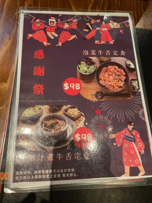 好友推薦這間牛舌專門店,這間餐廳也經常出現在土瓜灣區推薦食肆列表之中,今次終於有機會試試。假日晚間18:30左右到達(餐廳晚市18:00開始營業),等了15分鐘左右便有得食。餐牌的食物款式不多,大部分都是牛舌料理,還有少量主食及串燒,不過當日所見基本上所有食客都是食牛舌。我們叫了最經典的極上牛舌定食及薄燒牛舌定食。