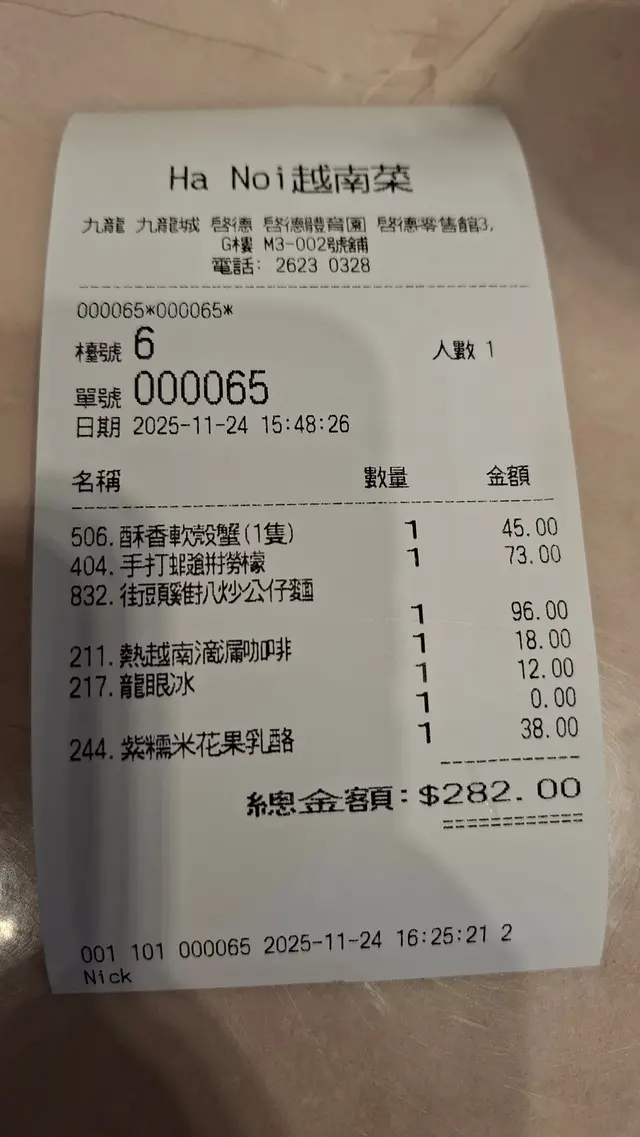 Ha Noi 越南菜 (九龍城) 網址: https://s.openrice.com/QrbS0ePuD00 地址: 香港九龍城啟德承啟道38-39號啟德體育園啟德零售館3 G樓M3-002號舖 電話: +852 26230328