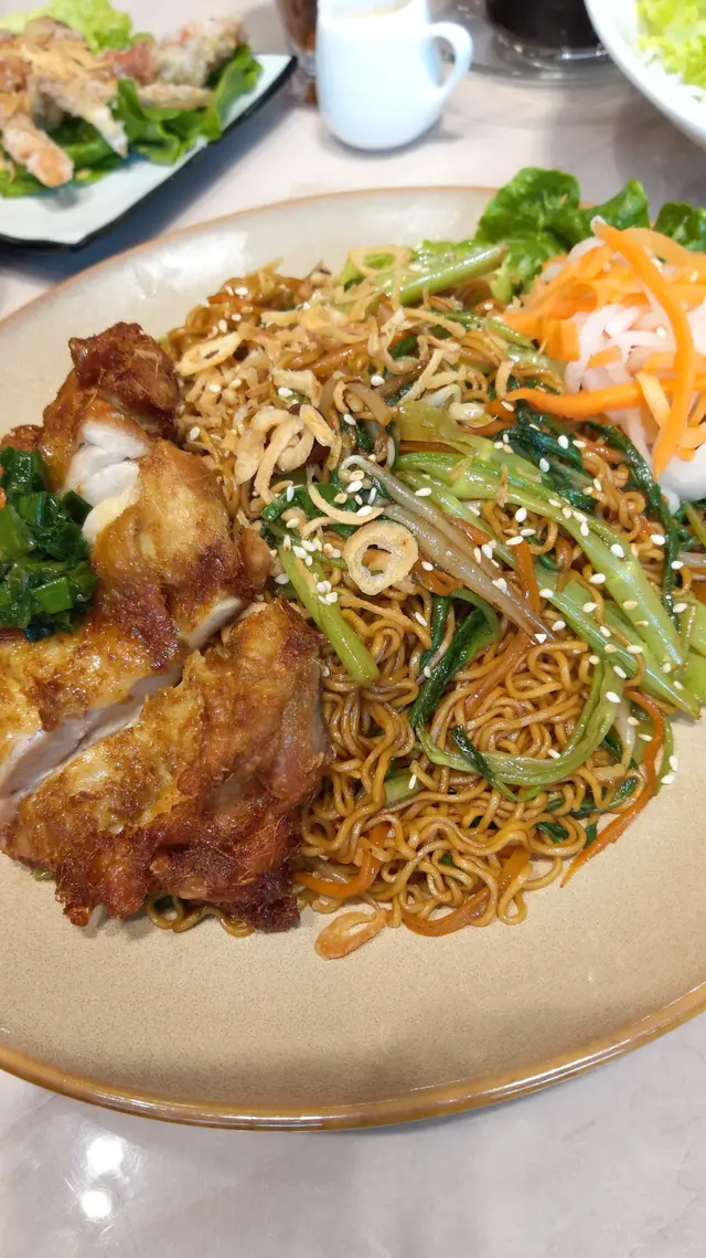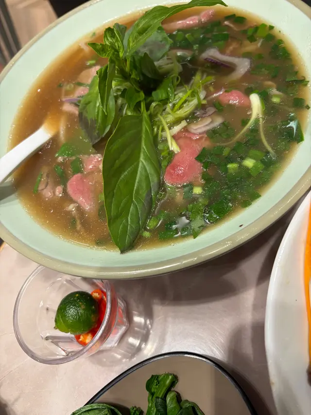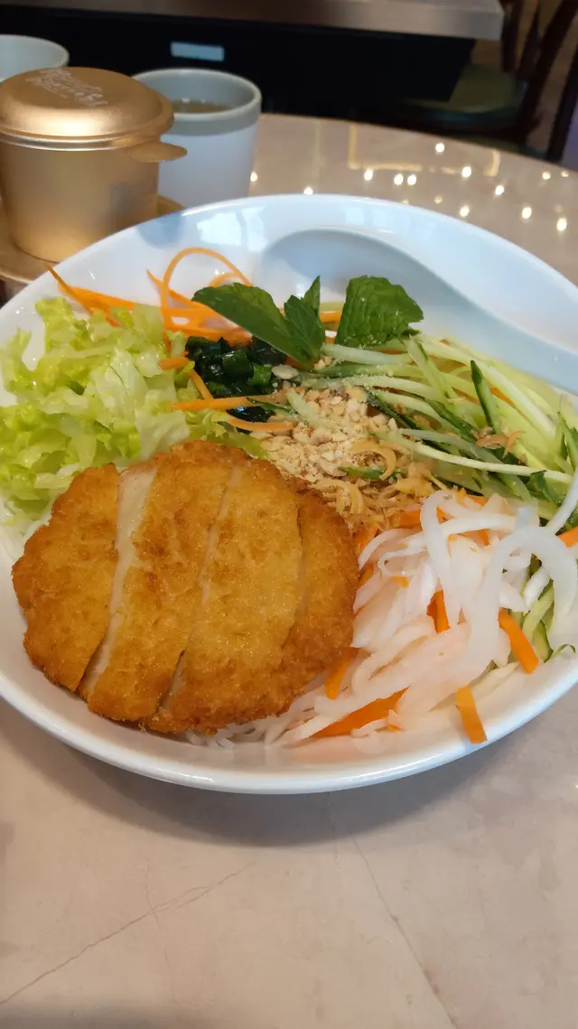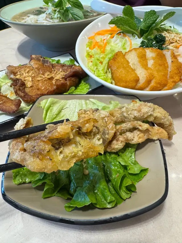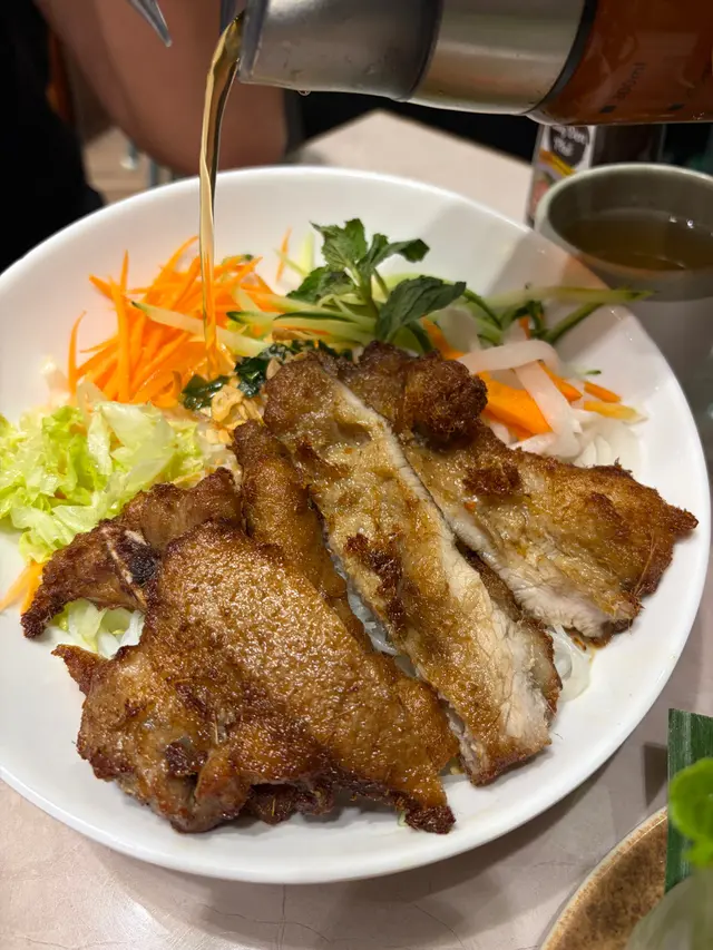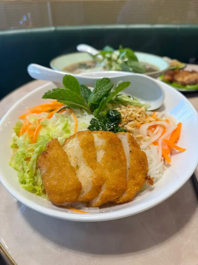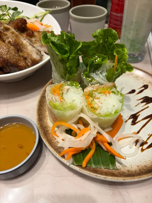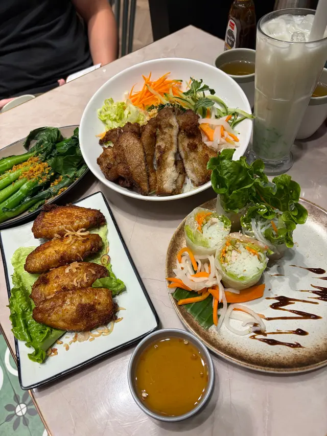 舊同事邀請到啟德體育園享用晚餐,園內有很多餐廳,我們選擇了越南菜,找到零售館3的<Ha Noi越南菜>。餐廳門面以綠色為主調,配上越南傳統的斗笠作裝飾。店內環境闊落,燈光柔和,座位挺多。我們點了4 人套餐(香茅豬扒撈檬、豬肉卷撈檬、牛丸撈檬、雞絲撈檬、河內越式小食拼盤、田園灼時蔬2碟和4杯特色飲品)、香茅沙嗲串燒(雞肉)和白飯。河內越式小食拼盤~毎次吃越南菜,我都會點小食拼盤,小食款式多,份量又剛好。河內越式小食拼盤有地道春卷、越南扎肉、手打蝦餅、香茅雞翼、鮮蝦米紙。我最喜歡吃地道春卷,脆卜卜外皮,滿滿餡料,放在新鮮生菜,包著吃不但不油膩,又健康又有口感。蝦餅外脆內嫩,濃厚鮮蝦味。香茅雞翼炸得金黃香脆,肉質保留嫩滑多汁。鮮蝦米紙很清新,薄薄的米紙皮很煙韌,包著鮮蝦、薄荷葉、青瓜絲和米粉,味道很好。我們各人點了一碗撈檬,毎碗撈檬份量很大,除了主菜外,還有生菜絲、青瓜絲、紅蘿蔔絲和炸蒜粒,加入酸辣越南醬汁/撈檬汁,特別醒胃。香茅豬扒撈檬~醃製的香茅豬扒很入味,豬扒厚度適中,外層煎得香,肉質軟嫩滑溜不乾身。牛丸撈檬~牛肉丸大小適中,共有10粒,朋友仔仔讚賞肉丸味濃,全部都吃光了。雞絲撈檬~雞絲份量比想像中多,肉質嫩滑,朋友可以把整碗撈檬吃光。豬肉卷撈檬~第一次吃豬肉卷,好像吃豬肉腸,份量不少,共有6條。豬肉卷鹹味,與清淡檬粉很搭配。田園灼時蔬~兩碟灼生菜,生菜新鮮翠綠,菜上放了很多炸蒜粒。香茅沙嗲串燒(雞肉)~雞肉燒得剛好,香又嫩滑,不乾身,點微辣沙嗲醬特別惹味。蜂蜜柚子梳打、椰果椰汁西米露、青檸梳打和熱情果冰~滋潤蜂蜜柚子配上梳打出奇好喝;椰果椰汁西米露口感豐富,毎一口都能吃到椰果和西米露,椰汁味濃郁;青檸梳打有4片大大塊青檸,朋友仔仔喝得很開心;熱情果冰的熱情果肉很多,酸酸甜甜,有助消化。最後,朋友仔仔想吃白飯,便點了一碗,這碗白飯比想像中多,挺滿的。…查看更多