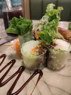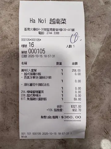 荃灣廣場新開了越南菜,性價比都幾高,還有2人或4人餐選擇更抵食,員工態度親切積極,換碟加水都很快手,有一大幅綠葉牆令環境更舒服,以鋪磚技藝重現河內街角韻味,整體食物有水準,值得有下次😊🔸️香濃咖哩軟殼蟹$128咖哩的香味濃郁,軟殼蟹炸酥脆可口,沾上咖哩汁又多一層味道。🔸️法式蒜茸包$38有咖哩怎可少了蒜茸包呢,另外點了一份,法包焗得酥脆內軟,散出濃郁蒜茸香味,把法包浸滿咖哩汁後進食,幸福感倍增🤩🔸️濱海伴豬頸肉串燒餅$96豬頸肉燒得很香,點了醬汁有少辣很惹味,用生菜包住濱海,酸蘿蔔絲,燒豬頸肉,加埋魚露一起食,減底油膩感之餘又添加了口感,十分美味😋🔸️香茅雞翼$23熱辣辣香噴噴的香茅雞翼外皮烤的金黃脆口,內裡肉嫩多汁🤤🔸️椰漿芒果紫糯米飯$78紫糯米飯熱辣辣出場,咬落去有嚼勁,芒果略慊生了少少未夠甜🤪 欣賞椰漿分開上,想落幾多就自己決定😋 為是晚畫上完美號😊🔸️牛油果沙冰$38炎炎夏日,沙冰入口透心涼😋不甜飲到淡淡的牛油果味夠曬健康😊🔸️越南滴漏咖啡+$18慢慢欣賞每一滴嘅咖啡,香濃帶點苦味,超欣賞這裡煉奶是分開上的👍甜度可自控👍…查看更多
