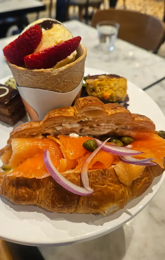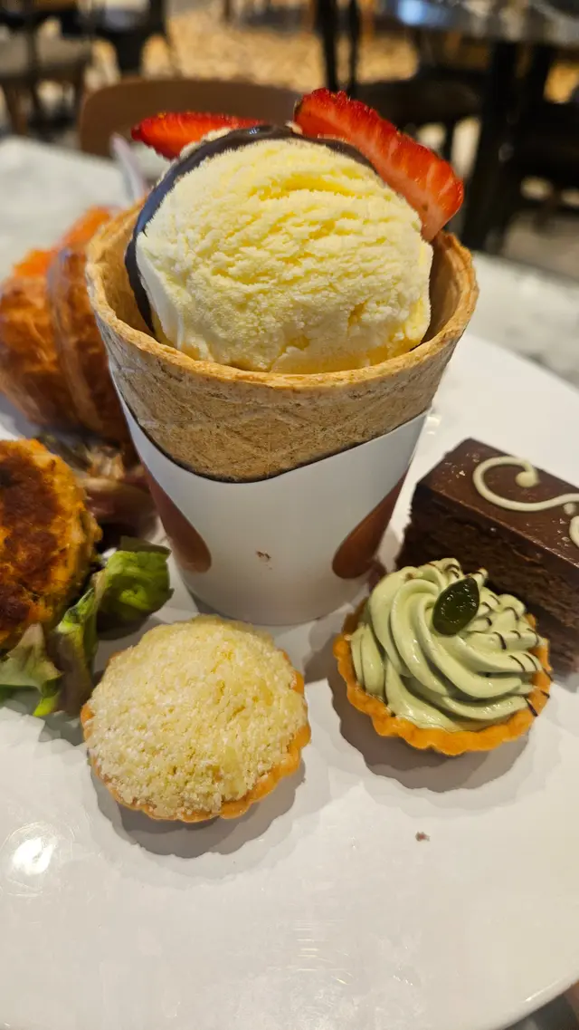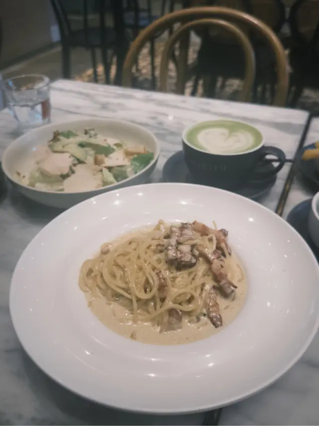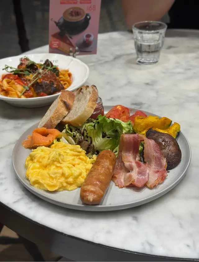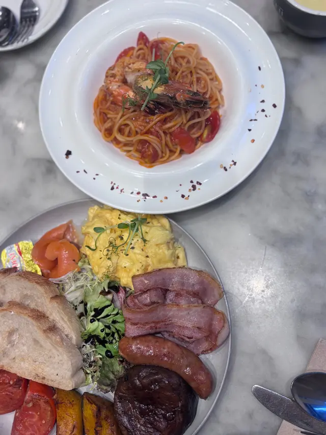 夜晚 同皮姐慶祝週年紀念日💓去咗 奧海城嘅咖啡廳食晚飯🍽️環境舒適 菜單嘅食物種類多📋食物嘅種類多 整體性價比高🫶🏻即使價錢下調 食物質量唔變🙈聽講熱賣嘅都有減價 勁抵食🤫叫咗 我最愛嘅全日早餐啊唷😍當然 叫埋皮姐最愛嘅薄餅啦😌-❤️Classic All Day Breakfast ($148)❤️經典全日早餐 ($148)係我嘅最愛 賣相真係好豐富🌟整體份量好足夠 幸福感滿滿🔥-🧡Pappardelle Al Funghi ($52)🧡黑松露野菌忌廉闊蛋麵 ($52)味道香濃 食落好有咬口🍝-💛Smoked Salmon Pizza ($168)💛煙三文魚薄餅 ($168)係皮姐嘅最愛 煙三文魚好新鮮🐟皮薄香脆 配埋火箭菜食無得彈🍕-💚Puffy Apple Tart ($52)💚蘋果酥餅 ($52)賣相好精緻 面上有開心果味嘅意大利雪糕🍦配埋一片片嘅蘋果餅底同 酥脆嘅黃金酥皮🍎估唔到咁夾 入口即融嘅感覺真係好特別啊💓同時形成完美的溫度差 整體食落唔算太甜💯-🩵Iced Mocha Soy Milk ($52)🩵抹茶泡沫豆奶 ($52)抹茶香味濃郁 配埋豆奶嘅微甜 口感順滑☕️…查看更多