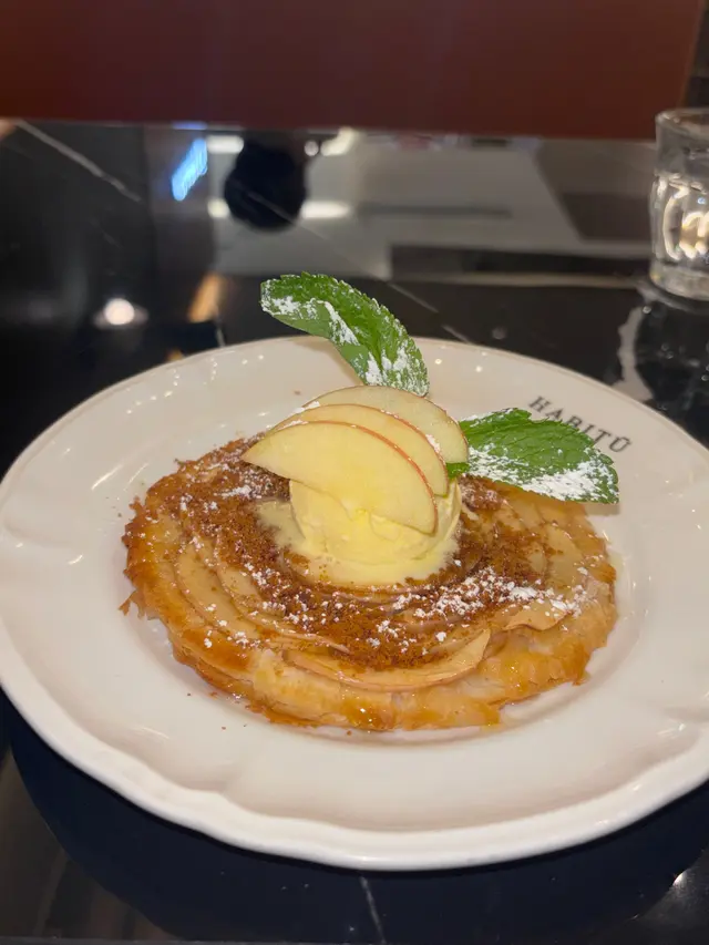 約了朋友去聚餐,想選個旺中帶靜可以傾計的餐廳,就選了位於美麗華商場地庫的「HABITŪ」,店內裝潢以簡約時尚風格為主,卡位梳化座位闊落舒適, 朋友之前在這裡吃過晚飯,說今次來到餐廳已經是全新菜單了,而且全部咖啡及人氣熱賣產品價格都有下調,感覺食物質量不變更抵食,而且店員服務態度亦很好,整個用餐過程感覺愉快。【經典全日早餐】(HK$142)(星期一至五5點前有咖啡送)色彩繽紛的全日早餐,煙三文魚、烤蕃茄、烤日本南瓜、啡菇、奶酪餡香腸、煙肉、沙律菜及玫瑰醬烤酸種麵包多士,十分豐富,份量十足又吃得飽。【慢煮牛臉頰新鮮闊蛋麵】(HK$148)慢煮牛臉頰肉烹煮到肉質很軟腍而且不肥膩,輕輕一咬就可以咬開,新鮮闊蛋麵麵質有彈性煮得剛剛好,撈勻後闊蛋麵掛了不少醬汁。【蘋果酥餅】(HK$68)新鮮制成的蘋果酥餅,熱辣辣鬆軟口感很像手抓餅,加上鋪了一片片的蘋果肉及雲呢拿雪糕,冷熱交織口感特別。【抹茶泡沫豆奶】(HK$50)奶泡四葉草拉花很美,抹茶加入豆奶後味道亦不會太淡,味道不錯,杯子設計有保溫功效,打完卡都不會變凍。【薄脆焦糖咖啡】(HK$50)咖啡表面有一層薄脆焦糖,帶有焦糖炙燒後的香甜與薄脆感,融合濃郁的咖啡,入口比單喝咖啡多了一份香甜的層次味道。…查看更多