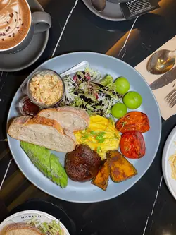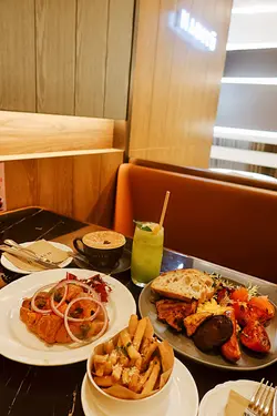 約了朋友去聚餐,想選個旺中帶靜可以傾計的餐廳,就選了位於美麗華商場地庫的「HABITŪ」,店內裝潢以簡約時尚風格為主,卡位梳化座位闊落舒適, 朋友之前在這裡吃過晚飯,說今次來到餐廳已經是全新菜單了,而且全部咖啡及人氣熱賣產品價格都有下調,感覺食物質量不變更抵食,而且店員服務態度亦很好,整個用餐過程感覺愉快。【經典全日早餐】(HK$142)(星期一至五5點前有咖啡送)色彩繽紛的全日早餐,煙三文魚、烤蕃茄、烤日本南瓜、啡菇、奶酪餡香腸、煙肉、沙律菜及玫瑰醬烤酸種麵包多士,十分豐富,份量十足又吃得飽。【慢煮牛臉頰新鮮闊蛋麵】(HK$148)慢煮牛臉頰肉烹煮到肉質很軟腍而且不肥膩,輕輕一咬就可以咬開,新鮮闊蛋麵麵質有彈性煮得剛剛好,撈勻後闊蛋麵掛了不少醬汁。【蘋果酥餅】(HK$68)新鮮制成的蘋果酥餅,熱辣辣鬆軟口感很像手抓餅,加上鋪了一片片的蘋果肉及雲呢拿雪糕,冷熱交織口感特別。【抹茶泡沫豆奶】(HK$50)奶泡四葉草拉花很美,抹茶加入豆奶後味道亦不會太淡,味道不錯,杯子設計有保溫功效,打完卡都不會變凍。【薄脆焦糖咖啡】(HK$50)咖啡表面有一層薄脆焦糖,帶有焦糖炙燒後的香甜與薄脆感,融合濃郁的咖啡,入口比單喝咖啡多了一份香甜的層次味道。…查看更多