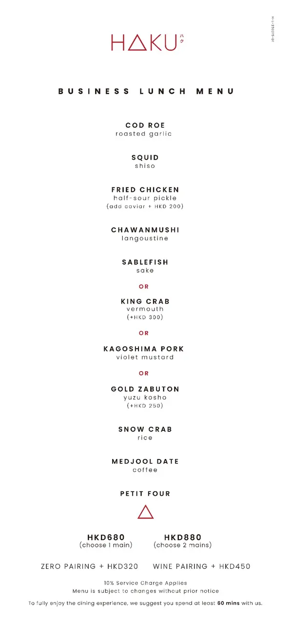 HAKU (中環) 網址: https://s.openrice.com/QrbS0h7uB00 地址: 香港中環金融街8號國際金融中心商場4樓4011號舖 電話: +852 28188030