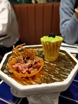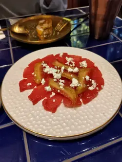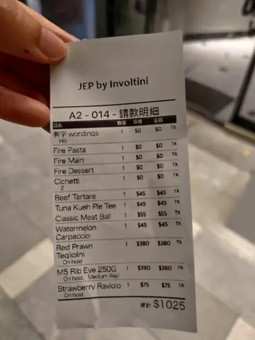 最近Jep by involtini rebrand完重開叫half!概念係每人可以分享 同埋裝修左真係好靚 由天花板教堂風 座位擺設 到餐具餐碟 全部都好復古有義大利感覺 我地試左2款最signature pasta!🍝Parpadelle alla carbonara💰158-full首先carbonra賣相好靚 肉煸得好正 似食臘肉 手工麵嘅口感幾硬 蛋黃雖然唔係好流但撈得係添加口感的 唔知係咪我影相太耐所以意粉唔算好熱 個汁就有D白白地 點完意粉會鹹多D幾有味但食到最後真係好鍾意麵嘅口感 硬身好啱我口味~夾鹹嘅豬面肉增加咬口幾好🍝Signature red prawn tagliolini💰380-full紅蝦意粉之前jep已經超出名 兩隻蝦油味都好出 蝦肉本身會小小軟爛感覺 意粉係幼麵 但第一啖有小小略苦(可能來自檸檬皮?之後食就夠味 我真係有壓出蝦頭好正)感覺汁可以多返小小 咁樣意粉會濃味D 但撈麵感覺唔錯的!4款antipasti好有tapas嘅感覺🍉watermelon carpaccio💰45超特別 聽到chef出來介紹先知上面係西瓜皮本身冇留意menu以為係洋蔥+新鮮西瓜口感真係好似醃製洋蔥嘅酸甜味 呢個combo真係用盡西瓜每分每豪 西瓜自己好甜 fetacheese偏鹹用來中和成碟口味啱啱好🥩beef tartare tart💰45牛肉粒感好正 有肉絲口感但唔會腥 千層絲好有心機整 有榛子同魚子醬做點綴🥔potato pave 💰38千層薯仔焦香口感+質地100分 風乾火腿存在感略低 可能融合好D味道再突出會更好🧆classic meat ball💰55意大利肉丸真係有筋有肉 有手打牛肉丸嘅感覺 增加口感加上芝士同番茄汁撈完唔錯 鍾意呢種口感多過一入口即融!仲有送左個蕃茄芝士多士好驚喜 蕃茄清甜多汁 唔鍾意食嘅我都食左幾舊 芝士係mascarpone+parmigiano好順滑同番茄好夾 多士唔係硬脆 口感外脆內軟 同cheese夾得好好!整體來講環境已經好加分 意粉手工仲要樣樣都可以做signature dish 每一種都想試 約會/同朋友慶祝 聚餐好選擇!…查看更多