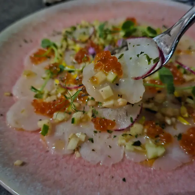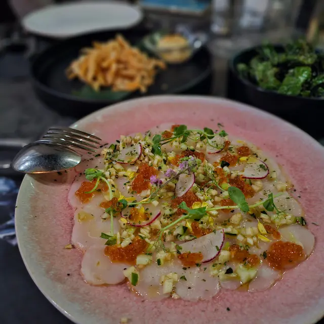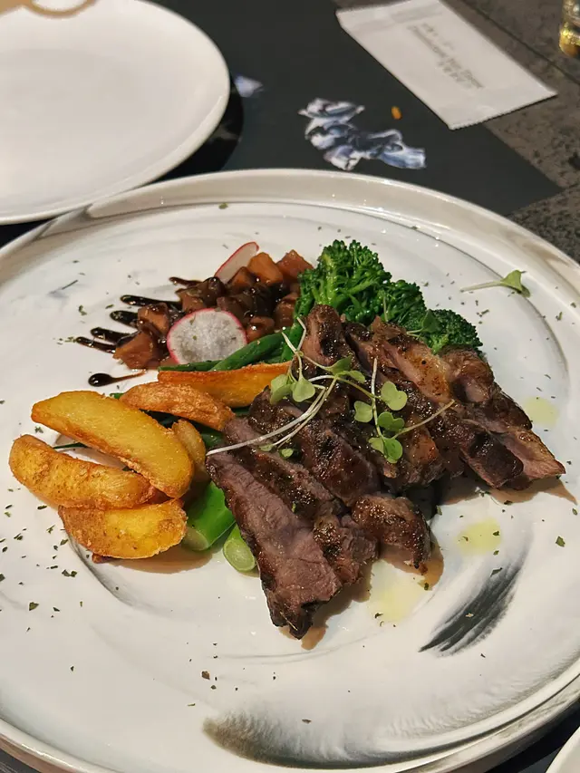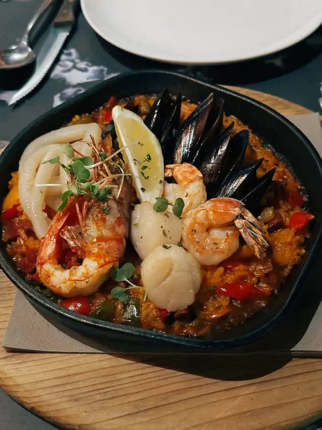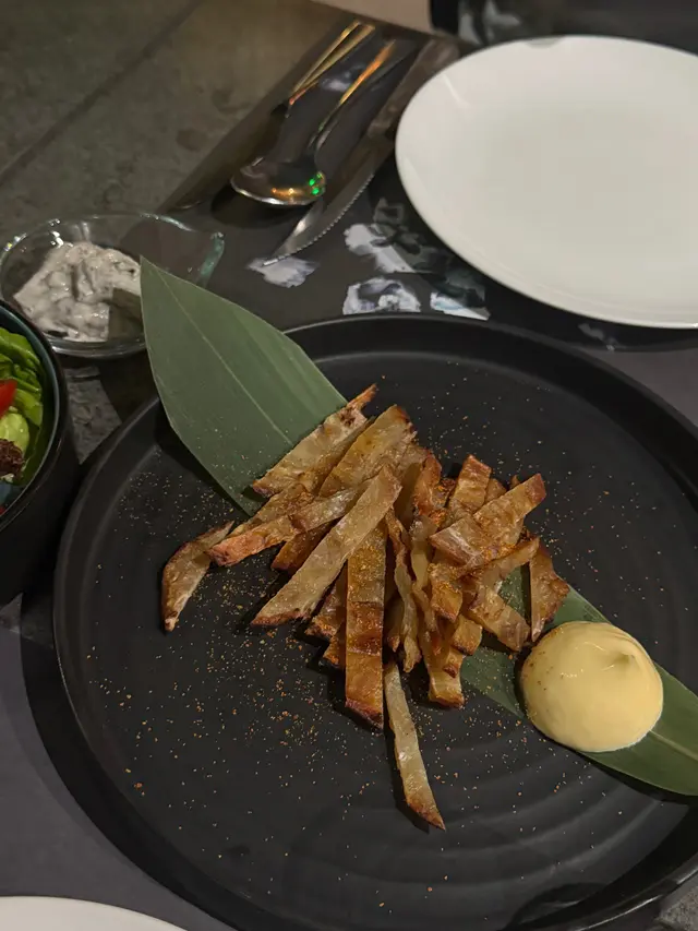 今日去到柯士甸同佐敦附近一間高質西餐廳Hara,餐廳主打西班牙菜,餐廳氣氛都幾優雅,店員服務態度良好,而且動作迅速~同埋餐廳都幾着重餐桌禮儀首先飲左黑松露野菌忌廉湯,我哋叫咗一碗,店員好細心幫我哋一分為二share飲~個湯超有黑松露同埋其他菌嘅香味,每一啖飲落去都有菌粒,口感唔錯,而且味道濃郁🫶🏻北海道帶子沙律係薄切帶子鋪喺底,上面鋪滿魚子、蘋果、青瓜等配菜~配料口感爽脆,醬汁味道酸酸鹹鹹~再加埋魚子嘅鮮香味同帶子的清甜味,味道幾特別地中海煎烤智利海鱸魚,魚肉上碟都幾大件,而且切落去都幾實淨,魚肉食落去有少少鹹鹹地嘅海水味~味道都唔錯,再點埋佢的黑醋醬汁又有另一種風味伊比利亞黑毛豬柳伴蘋果醬都極力推薦🫶🏻豬柳肉質肥瘦均勻,肥肉食落去唔會太漏,口感帶D黏糯,加上小小風乾臘肉香味,好少喺豬柳上面食到呢一種感覺,都幾驚喜最尾食埋甜品蘋果金寶😍外皮酥脆,內裏夾雜着蘋果肉餡,擺盤精緻,作為最後嘅結尾夠晒滿足🥴近地鐵站,地點都方便,想同朋友食好少少,呢度聚餐都可以考慮👍…查看更多