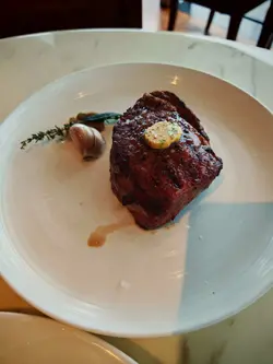 見youtuber介紹呢間餐廳所以來試呢個Set Lunch $398間野係扒房,所以我就加$148主菜要左份美國頂級西冷扒,我叫左Medium。