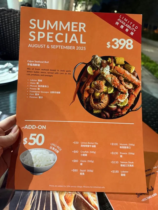 手搖海鮮袋,完全冇諗過呢份海鮮可以咁大份,上枱時真係嘩左聲!呢份手搖海鮮包括有龍蝦、蝦、青口、蜆、粟米、薯仔同埋腸!龍蝦大隻多膏,蝦肉份量超多,爽口彈牙!青口鮮甜大隻,由於海鮮用上蒜蓉檸檬牛油醬,食落海鮮味道酸酸味味加上微辣,十分惹味!仲可以加$50白飯任添!