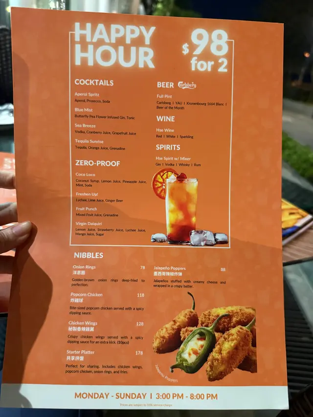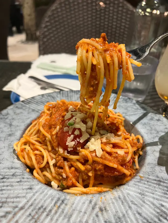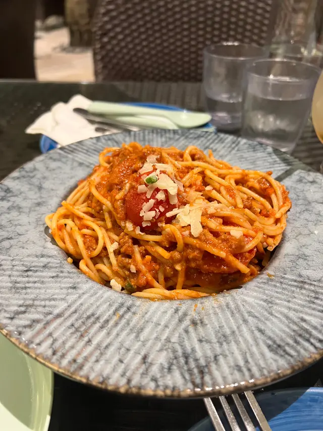 肉醬意粉,意粉份量都比預期多,肉醬味道酸酸味味,上面仲灑上芝士,咸香又美味!Happy hour時間有酒精加無酒精飲品兩杯都係$98,抵呀!