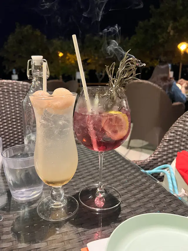 Blue Mist,呢杯cocktail用上蝶豆花加入gin 同tonic,上枱時店員仲幫忙點著於杯中嘅香草,會聞到陣陣香味!飲品酒嘅味道都幾濃!