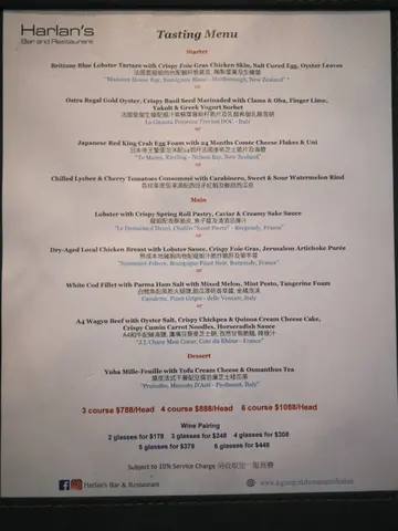 工作咁辛苦,梗係要食返餐Fine dining開心吓就決定去尖沙咀The One 19樓Halan’s Bar and Restaurant我地叫咗佢嘅Tasting Menu,任選三道菜都係$788 /人,唔算貴而呢度環境當然就一流啦,對正維港靚景, 180度海景,仲有落地大玻璃,無論係室內定室外都可以欣賞到香港嘅一流夜景而室內就更加比人一種高貴同安靜嘅感覺,彷彿進入咗另一空間,非常舒服講返食物,前菜:1️⃣北海道帶子他他配火龍果脆片、紅石榴蓉呢款北海道帶子他他入口滑溜舒服,都算新鮮加上酸酸甜甜嘅火龍果脆片,泰國紅石榴醬調味食落就覺得更多層次,Fresh感倍增2️⃣日本帝王蟹蛋泡沫配24個月法國康帝芝士脆片及海膽呢款一聽個名就知係正嘢啦!佢係大廚嘅得獎作品,食材靚料,用帝王蟹肉打做泡沫口感食落似金華火腿,鹹鮮十足海膽用咗北海道海膽,仲有魚子醬同24個月芝士脆片將脆片駁落去混合泡沫一齊食,好有層次,Creamy得嚟亦好有儀式感3️⃣煙燻海蜇蝦石榴巴馬火腿清湯蜆汁凍湯質地睇落薄身,但入口有好濃郁嘅煙燻金華火腿味,又估佢唔到喎!海蜇蝦彈牙,蜆有刻意炙燒過,處理食材上都見得出好有心機而配埋九層塔同脆米令味道變得更豐富主菜:4️⃣西班牙八爪魚配意式薯仔麵團西班牙八爪魚燒得幾香,食落好有膠質,好軟熟,外皮仍然好焦脆,係好特別嘅texture加上自家醃醍魚脆,酸甜又開胃主食有意大利Gnocchi配上辣肉腸甜椒汁,甜甜辣辣咁,又飽肚又好食5️⃣黑松露北非小米配和牛牛舌及牛小排首先呢款嘅汁料都好抌本,係用咗鵝肝龍蝦汁同雞皮脆片嚟調味而和牛牛舌烤肉,慢煮炮製,煮得非常軟熟,而且好入味牛小排質比較有咬口,同樣好食到牛肉嘅濃香黑松露北非小米索晒啲牛汁,好juicy甜品:6️⃣香檸檬芝士蛋糕配酸柑、楓糖漿,糖漬檸檬皮,碧根果曲奇呢款芝士蛋糕就超級refreshing檸檬同酸柑嘅配搭好突出到嗰種酸香同時用咗貴價嘅碧根果,更能帶出烘焙嘅香氣,整體配搭好好,仲配咗個小小嘅雪葩令人十分滿足…查看更多