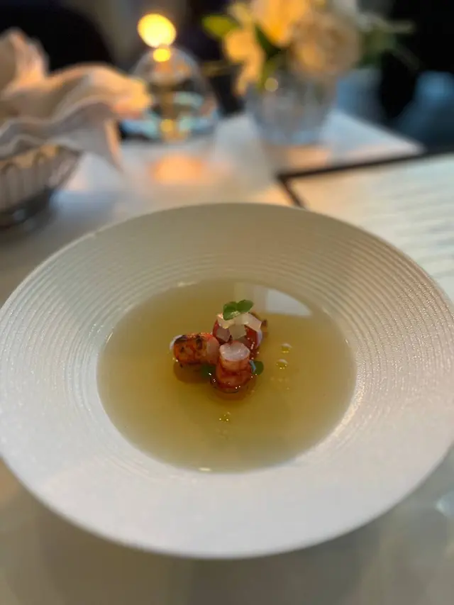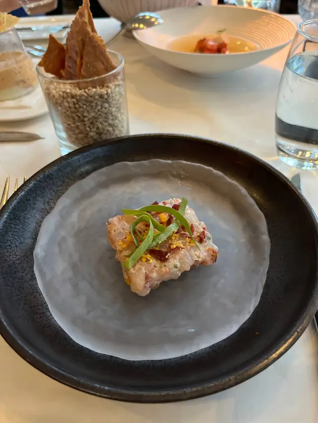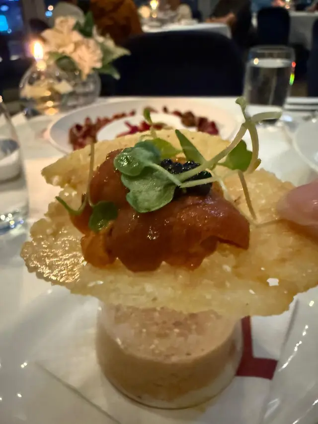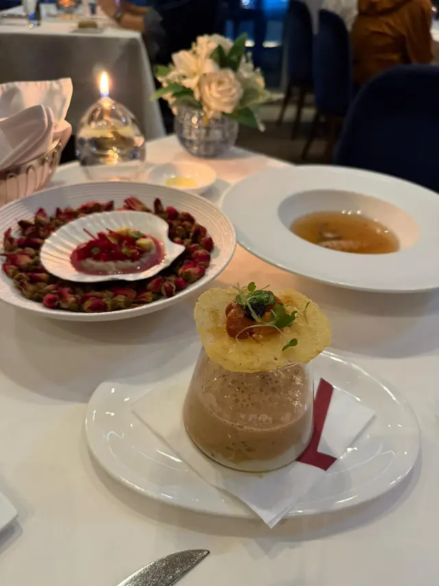 都唔係第一次喺The One嘅食肆晚餐,一路都知道The one望到維港嘅夜景好靚,但之前食開都係中菜個氣氛始終唔夠浪漫,最近初體驗Harlan’s Bar & Restaurant,餐廳主打fine western cuisine ,餐廳氣氛配合超過180度無遮擋嘅維港靚景 真係浪漫到無野挑剔我地揀左3 course dinner $788 per pax雖然係走Fine dining路線 但食物份量都唔少 我地揀左唔同嘅菜式 變相可以試到6個course🤭Appetiser🥄煙燻海螯蝦•石榴巴馬火腿清湯蜆汁果凍蝦味濃郁,肉質彈牙,個蜆汁果凍清湯味道好獨特 ,勁鮮味,有驚喜🍴北海道帶子他他配火龍果脆片紅石榴蓉牛肉同三文魚他他食得多,帶子他他第一次食,配火龍果脆片同紅石榴蓉,好新穎🍴日本帝王蟹蛋泡沫 配24個月法國康帝芝士脆片及海膽餐廳職員話呢個係Harlan’s嘅得獎菜式,賣相有少少似啲分子料理,上層嘅芝士脆片整碎mix埋杯內嘅帝王蟹蛋泡沫一齊食,每一啖都食到好多蟹肉,唔單止好有口感,味道仲超濃郁,真心出色!Main Course 🍽️ 黑松露北非小米配和牛牛舌及牛小排• 鵝肝龍蝦汁北非小米細細粒口感煙韌 每啖都食到龍蝦汁既精華,牛舌同牛小排肉味濃郁,肉質軟腍🍽️ 慢煮伊比利豬肋眼上蓋肉配柚子沙律、日本柑橘及杏桃果蓉伊比利豬豬肋眼上蓋肉口感幾特別,由於好有肉味,有一刻懷疑緊係咪真係食緊豬😆配菜柚子沙律 有別平日食到嘅 有少少中菜feel 加上日本柑橘及杏桃果蓉 清新嘅Dessert🥄香檸檬芝士蛋糕配酸柑•楓糖醬•糖漬檸檬皮•碧根果曲奇不太嗜甜嘅吃貨小妹表示對呢個甜品極為滿意❤️一啖檸檬cheese cake再配一啖雪葩 成件事好fresh,加埋側邊啲脆餅更加好味,好慶幸有揀到甜品🤭題外話,餐廳有位短髮嘅女職員 全晚除左好清晰介紹菜式,仲密密主動fill水,服務同笑容都滿分…查看更多