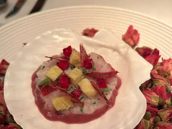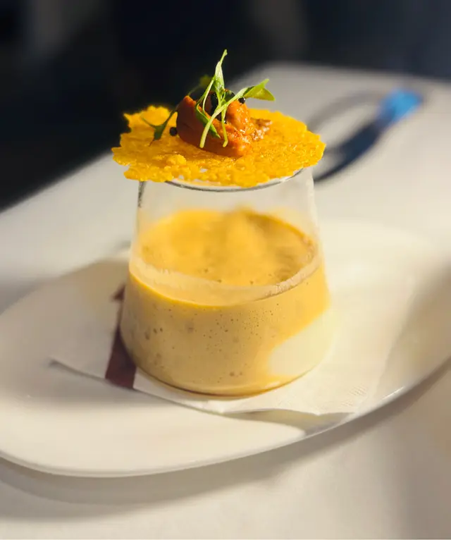 日本帝王蟹蛋泡沫配24個月法國康帝芝士脆片及海膽