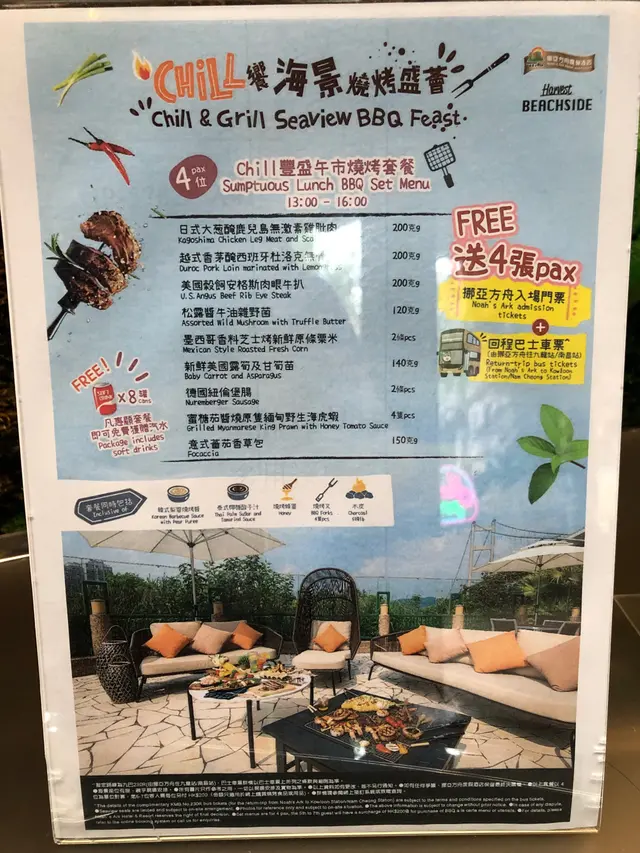 Harvest Beachside (馬灣) 網址: https://s.openrice.com/QrbS0ixuB00 地址: 香港馬灣珀欣路33號挪亞方舟度假酒店地下層 電話: +852 34118836