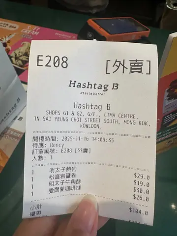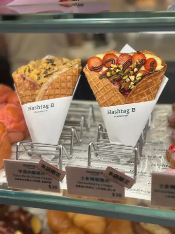今日路過旺角,終於試咗傳說中嘅 hashtag B!買咗幾款人氣 item。🥐 士多啤梨牛角酥 外層酥脆,牛油香好出,入面夾住新鮮士多啤梨同滑滑忌廉,甜度啱啱好,唔會膩~食落有層次感,打卡又靚,推介!🫐 藍莓忌廉芝士貝果 貝果口感偏煙韌,咬落去有啲滿足感~中間夾住藍莓醬+忌廉芝士,酸酸甜甜幾開胃。不過如果你鍾意鬆軟款,呢個可能唔係你杯茶。🐟 吞拿魚酥 呢個幾有驚喜!外皮酥香,入面係鹹香嘅吞拿魚餡,仲有少少洋蔥提味,唔會太乾,成件事幾有層次~鹹點控可以一試。hashtag B 果然出品有水準,甜鹹點都有驚喜,價錢中上但質素對得住價錢。下次會想試埋佢哋其他口味!☕ 愛爾蘭咖啡撻 呢個真係好香~咖啡味濃郁,帶少少酒香(但唔會醉嗰種🤣),撻皮鬆化,甜度適中,食完有種大人味嘅滿足感。hashtag B 果然出品有水準,甜鹹點都有驚喜,價錢中上但質素對得住價錢。下次會想試埋佢哋其他口味!