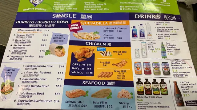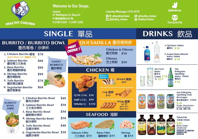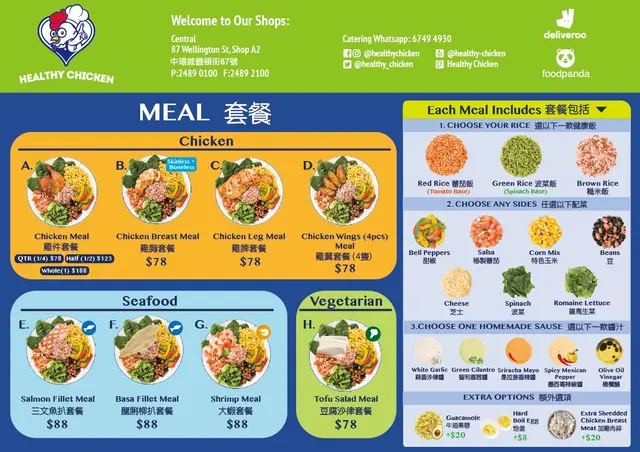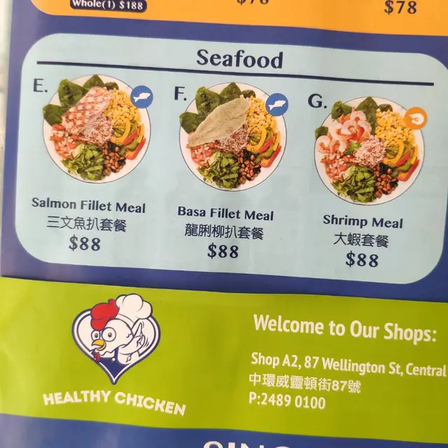 Healthy Chicken (中環) 網址: https://s.openrice.com/QrbS0DSy100 地址: 香港中環威靈頓街87號群英商業大廈地下A2舖 電話: +852 24890100
