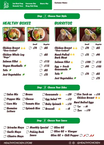 Healthy Chicken (海暉大廈) (鰂魚涌) 網址: https://s.openrice.com/QrbS0Iy0500 地址: 香港鰂魚涌芬尼街22-46號海暉大廈地下Q號舖 電話: +852 65886924
