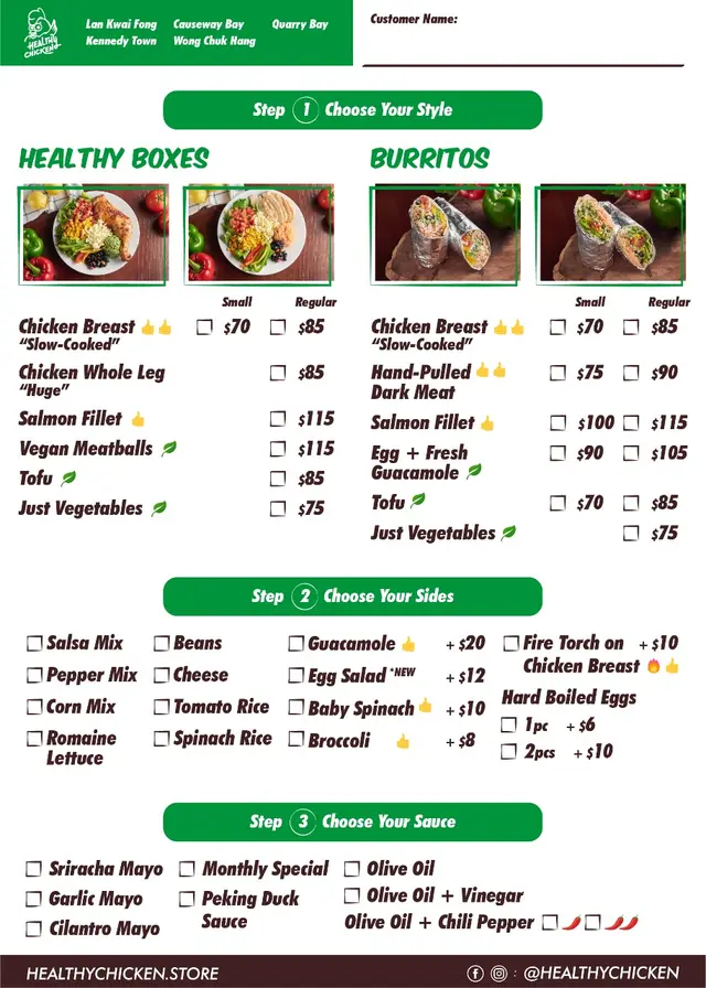 Healthy Chicken (海暉大廈) (鰂魚涌) 網址: https://s.openrice.com/QrbS0Iy0500 地址: 香港鰂魚涌芬尼街22-46號海暉大廈地下Q號舖 電話: +852 65886924