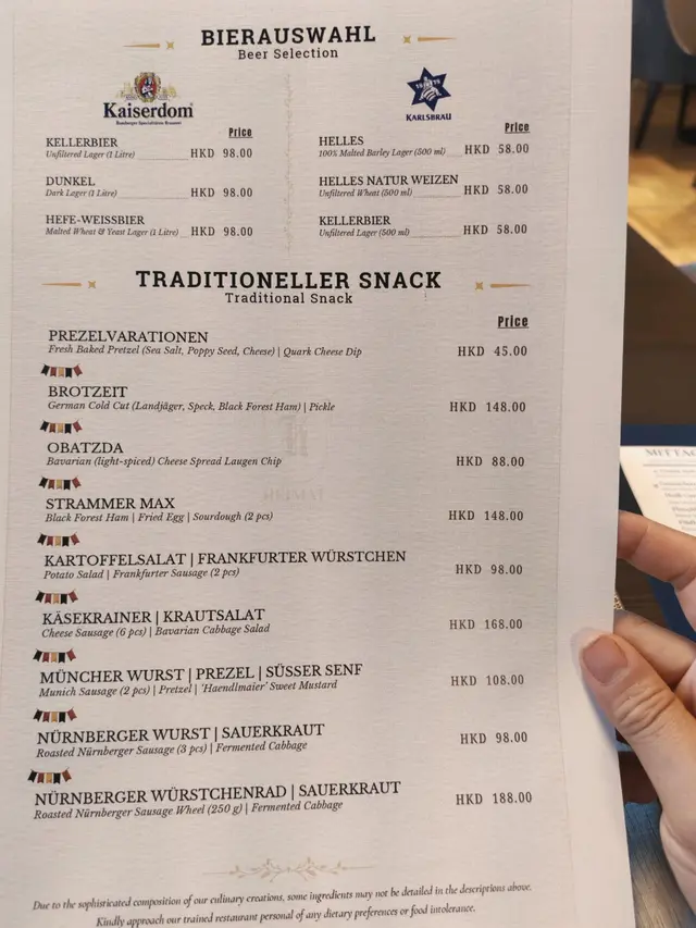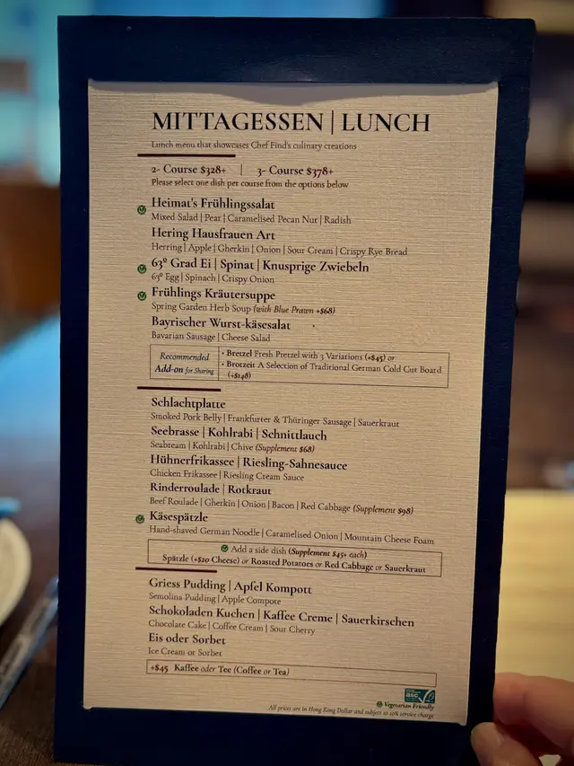 I recently discovered a hidden gem in Hong Kong that completely changed my perception of German cuisine. From the moment I stepped inside, I was impressed by the stylish and elegant decor, the warm and attentive service, and most importantly—the innovative, modern takes on traditional German dishes.🥨 The Best Pretzel I’ve Ever HadMy meal began with a classic German favorite—the pretzel. But this was no ordinary pretzel. It was the most delicious bretzel I’ve ever tasted, perfectly baked with a soft, chewy inside. Paired with a smooth sour cream, it was presented in such a cute and charming way that made the experience even more delightful.🤍 Seasonal White Asparagus: A Perfect StartNext, I tried a dish from the Seasonal White Asparagus Menu that Chef Peter personally recommended: Organic Poached Egg with Roasted White Asparagus, Black Forest Ham, Parmesan Foam, and Hazelnut. The moment I smelled it, I knew I was in for something special. The white asparagus was sweet and tender, the Black Forest ham was incredibly flavourful and tender, and the Parmesan foam added a light, creamy, tasty touch. The poached egg tied everything together beautifully, making it a perfect harmony of tastes and textures.🥣 Comfort in a Bowl: White Asparagus Cream SoupBefore the main course, Chef Peter kindly served me a bowl of White Asparagus Cream Soup. Light yet creamy, this soup highlighted the natural sweetness of the asparagus and was the perfect comforting start to the meal.🍝 The Star Dish: Hand-Shaved KäsespätzleThe highlight of my meal was the Käsespätzle—hand-shaved German noodles with caramelized onions and mountain cheese foam. The spätzle was slightly fried to golden colour incredibly chewy, richer than usual thanks to extra eggs, and paired wonderfully with the sweet caramelized onions. The mountain cheese potato foam added a luxurious, creamy finish, was an unexpected delight that enhanced the dish’s richness. Finding authentic spätzle in Hong Kong is rare, and this was by far the best I’ve ever had.🍰 A Contemporary Twist on Black Forest CakeFor dessert, I indulged in Schokoladen Kuchen with Kaffee Creme and Sauerkirschen—essentially a Black Forest cake reimagined. The chocolate cake was rich and moist, highlighted perfectly by the amazing white coffee cream, which was infused by soaking coffee beans overnight to extract flavor without color. The sour cherries added a refreshing tartness, rounding out the dessert beautifully.💯 Elegant Ambiance and Attentive ServiceThe restaurant’s muted color palette of blue and dusty orange created a calm and sophisticated atmosphere. It’s an ideal spot for both casual and corporate dinings. Chef Peter’s personal introduction to the dishes made the experience even more special, showcasing his passion and expertise.✨Looking Forward to MoreThis visit convinced me that German cuisine is so much more than just sausages and sauerkraut. I’m already planning to return to try their Chicken Schnitzel and Seebarsch (sea bass). With Father’s Day coming up, this elegant spot will definitely be on my list for a special celebration.…查看更多