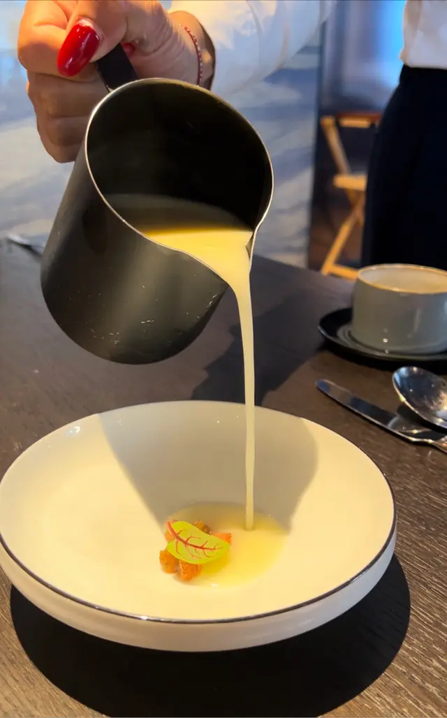 今天我亲自测试平均分4.7而且人均300多的中环黄金地段的米其林推介德国餐厅。我的总结是千万别要带女朋友,否则你一定会被痛打一顿!食物水准低于预期,服务水准是低无可低,环境符合预期。虽然价格不贵,但我只会来一次不会重来!头盘~Baked meatloaf, fried egg, spinach 焗肉饼煎蛋菠菜经理推介的这一道菜焗肉饼有点象火腿偏鹹配煎蛋和菠菜就是平常西式早餐的差不多,零经起不算难吃但也不好吃~Pancake soup noodle with beef commsomme牛肉汤配面条同样是经理推介的!这个有点离谱!牛肉汤吃起来就像罐头的牛肉汤,面条其实就象是急冻腐皮丝,1面条有雪柜的雪味,觉得比起快餐店的话要差主菜Smoke Pork Belly Frankfurt Thuringer sausage, Sauerkraut 煙燻五花肉法蘭克福香腸,酸菜经理极力推介的烟燻五花肉,味道和之前的焗肉饼调味差不多,这个还可以配的香肠,就是平常可以吃得到的超市德国香肠!酸菜也就是预期中的味道不过不失Half Roasted yellow Spain chicken with German roasted Potatoes半隻烤黄油春鸡配德国烤马铃薯同样是经理推介的,这隻重点推介的黄油春鸡,完全没有本地鸡的香味!就是那种雪鸡又干有没有鸡味,最好吃的就是马铃薯,我觉得是失败的一道菜!!甜品绝对是灾难级别的chocolate cherry cake巧克力樱桃蛋糕这个蛋糕看起来可以,可惜吃进口就是非常浓郁的冰箱味!究竟是放了在冰箱几天?是三天?四天?五天?六天?还是七天?真的不能确定。绝对不推介!coffee pudding 咖啡布甸。味道就是一个字~怪。咖啡布甸竟然没有咖啡味吃进口都不知道是什么味道!底部的樱桃味酱料有点科技感整体是难吃的难怪中午在中环这个黄金地段竟然只坐了三台!厨房的员工和服务员加起来比起顾客话要多呢!餐厅十张枱空出来九张!虽然价格不贵而且经济也差但是好吃的餐厅在中环还是满座的。虽然今天埋单400元左右,就是有点倒胃口的味道。虽然不是香港最难吃的西餐,但却是平凡不过!本来想给三分半可惜,服务减了半分。经理是平易近人的,可惜服务一般一般,踉1经理要了一个碗来分汤,结果她忘记了。我们举手问另外一位服务员拿个汤碗,服务员竟跟我们说这个汤太难分我们不建议!结果我跟服务员说要求只要一个碗不用他分, 便拿来了?!其实有多难分呢?就是清汤和几条像豆皮的面,他就是不想分。我决定把正总评分因为服务到扣半分也相当合理吧。#德国菜 #0元玩转这座城 #米奇林餐厅 #中环餐厅 ##米其林 #黑珍珠餐厅打卡 #吃货的探店日记 #餐厅打卡 #人人都是美食家 #同城美食 …查看更多