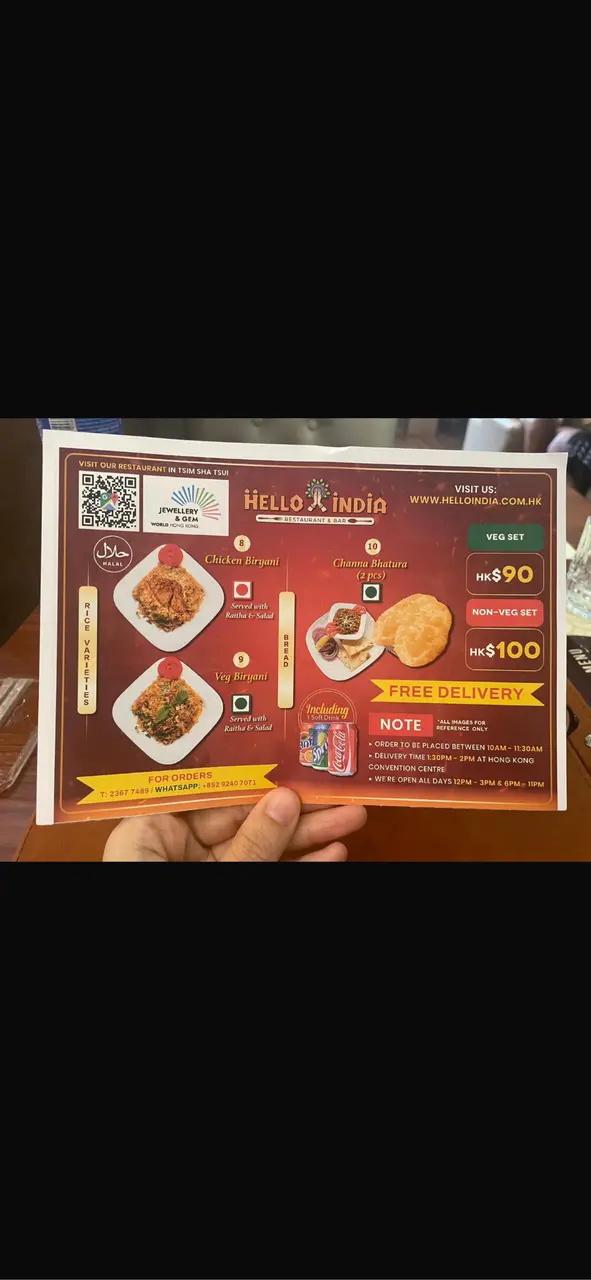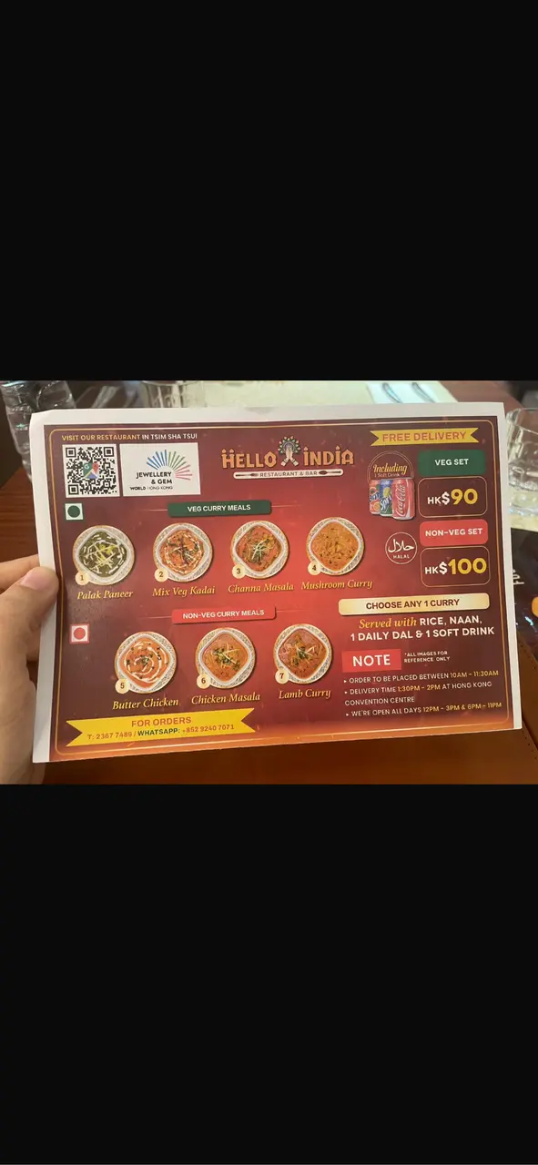 Hello India Restaurant & Bar (尖沙咀) 網址: https://s.openrice.com/QrbS0GQeF00 地址: 香港尖沙咀北京道71-77號誠信大廈3樓 電話: +852 23677489