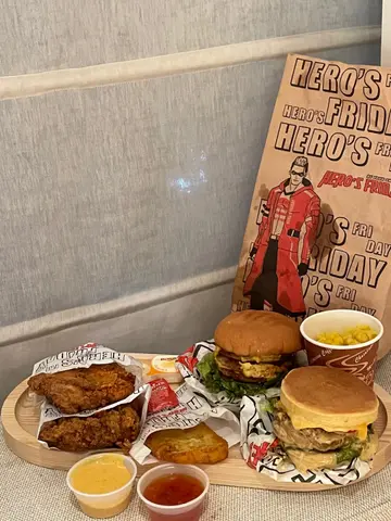 𝘾𝙧𝙖𝙫𝙞𝙣𝙜 𝙖 𝙗𝙪𝙧𝙜𝙚𝙧 𝙮𝙚𝙩?🍔 𝙏𝙧𝙮 𝙤𝙪𝙩 𝙩𝙝𝙚𝙨𝙚 𝙤𝙫𝙚𝙧𝙡𝙮 𝙙𝙚𝙘𝙖𝙙𝙚𝙣𝙩 𝙗𝙪𝙧𝙜𝙚𝙧𝙨 𝙨𝙖𝙣𝙙𝙬𝙞𝙘𝙝𝙞𝙣𝙜 𝙥𝙧𝙞𝙢𝙚 𝙥𝙖𝙩𝙩𝙞𝙚𝙨 𝙞𝙣 𝙃𝙚𝙧𝙤’𝙨 𝙁𝙧𝙞𝙙𝙖𝙮🦸🏻 , 𝙬𝙝𝙞𝙘𝙝 𝙞𝙨 𝙩𝙝𝙚 𝙥𝙞𝙤𝙣𝙚𝙚𝙧 𝙤𝙛 ‘𝙋𝙖𝙣𝙜𝙚𝙧’ (𝙥𝙖𝙣𝙘𝙖𝙠𝙚 + 𝙗𝙪𝙧𝙜𝙚𝙧) 𝙞𝙣 𝙃𝙤𝙣𝙜 𝙆𝙤𝙣𝙜! 𝙍𝙤𝙡𝙡 𝙪𝙥 𝙮𝙤𝙪𝙧 𝙨𝙡𝙚𝙚𝙫𝙚𝙨 𝙖𝙣𝙙 𝙩𝙪𝙘𝙠 𝙞𝙣𝙩𝙤 𝙩𝙝𝙚𝙨𝙚 𝙢𝙚𝙖𝙩𝙮 𝙢𝙖𝙧𝙫𝙚𝙡𝙨 𝙞𝙣 𝙩𝙤𝙬𝙣.🦹🏼喺深水埗區返工嘅朋友仔應該一定有見過呢間裝修得好有Marvel 感覺嘅英雄主題漢堡店 - 𝙃𝙚𝙧𝙤’𝙨 𝙁𝙧𝙞𝙙𝙖𝙮, 雖然佢三間分店都係九龍區,但係而家港島/新界嘅朋友都有口福啦,佢哋出左自家app,可以自助落單,你可以選擇到店自取或者全港送貨(含運費),安在家中就可以食到啦!佢哋呢期仲推廣緊會員增值,可以升級至社區英雄Plan B計劃(買$1000 現金券送$300 優惠劵,77折) 或社區英雄Plan C計劃(買$2000 現金券送$700 優惠券,74折) ,如果成日食嘅朋友仔一定唔好錯過啦!自選兩款餐 (套餐跟一款小食及飲品)✨𝟰 𝘅 𝗕𝗹𝗮𝗰𝗸𝗣𝗲𝗽𝗽𝗲𝗿 𝗣𝗼𝗿𝗸 𝗕𝘂𝗿𝗴𝗲𝗿黑椒豬堡四重奏🐷$𝟲𝟲 (🌟𝟴/𝟭𝟬)4 𝘗𝘰𝘳𝘬 𝘚𝘢𝘶𝘴𝘢𝘨𝘦𝘴 𝘸𝘪𝘵𝘩 𝘓𝘦𝘵𝘵𝘶𝘤𝘦, 𝘊𝘩𝘦𝘥𝘥𝘢𝘳 𝘊𝘩𝘦𝘦𝘴𝘦𝘴 𝘢𝘯𝘥 𝘉𝘭𝘢𝘤𝘬 𝘗𝘦𝘱𝘱𝘦𝘳 𝘚𝘢𝘶𝘤𝘦漢堡包好軟熟,用牛油煎過好香,以四層豬柳配上勁惹味嘅黑椒汁,仲有兩塊車打芝士,真係可以話係最大嘅卡路里武器,好彩有勁多新鮮生菜可以解膩姐!𝙏𝙝𝙚 𝙗𝙡𝙖𝙘𝙠 𝙥𝙚𝙥𝙥𝙚𝙧 𝙥𝙤𝙧𝙠 𝙥𝙖𝙩𝙩𝙞𝙚𝙨 𝙖𝙧𝙚 𝙩𝙤𝙥𝙥𝙚𝙙 𝙬𝙞𝙩𝙝 𝙢𝙚𝙡𝙩𝙚𝙙 𝙘𝙝𝙚𝙙𝙙𝙖𝙧 𝙘𝙝𝙚𝙚𝙨𝙚 𝙖𝙣𝙙 𝙨𝙖𝙣𝙙𝙬𝙞𝙘𝙝𝙚𝙙 𝙗𝙚𝙩𝙬𝙚𝙚𝙣 𝙩𝙬𝙤 𝙩𝙤𝙖𝙨𝙩𝙮 𝙖𝙣𝙙 𝙛𝙡𝙪𝙛𝙛𝙮 𝙗𝙪𝙣𝙨. 𝙏𝙝𝙚 𝙡𝙚𝙩𝙩𝙪𝙘𝙚 𝙙𝙤𝙚𝙨 𝙖 𝙜𝙤𝙤𝙙 𝙟𝙤𝙗 𝙞𝙣 𝙘𝙪𝙩𝙩𝙞𝙣𝙜 𝙩𝙝𝙧𝙤𝙪𝙜𝙝 𝙩𝙝𝙚 𝙧𝙞𝙘𝙝𝙣𝙚𝙨𝙨.𝗪𝗶𝘁𝗵 𝗛𝗮𝘀𝗵 𝗕𝗿𝗼𝘄𝗻配薯餅🥔薯餅炸得好脆,食得出明顯一粒粒嘅薯仔口感,唔會變到一𝙥𝙖𝙩 𝙥𝙖𝙩𝗣𝗵𝗼𝗲𝗻𝗶𝘅 𝗕𝘂𝗿𝗴𝗲𝗿 🍗鳳凰漢堡 (轉班堡🥞)$𝟲𝟯+$𝟭𝟬 (🌟𝟴.𝟱/𝟭𝟬)𝘊𝘩𝘪𝘤𝘬𝘦𝘯 𝘍𝘪𝘭𝘭𝘦𝘵 𝘸𝘪𝘵𝘩 𝘓𝘦𝘵𝘵𝘶𝘤𝘦 𝘢𝘯𝘥 𝘛𝘰𝘮𝘢𝘵𝘰, 𝘊𝘩𝘦𝘥𝘥𝘢𝘳 𝘊𝘩𝘦𝘦𝘴𝘦呢度嘅班堡係全港首創,我就忍唔住要試吓,蛋味濃郁嘅班堡鹹鹹甜甜咁幾新奇,入面係超厚切嘅大雞扒(睇相就知!),超級嫩滑同juicy,雖然咁厚但入面都係煎到熟曬,冇渣同埋雪味,配埋沙律醬係超級滋味 (App入面可以揀多醬,少醬同走醬,任君選擇,仲有其他例如BBQ醬, Hero醬等等,我自己覺得揀少醬先唔會浸濕晒個包影響口感!)𝗪𝗶𝘁𝗵 𝗦𝘄𝗲𝗲𝘁 𝗖𝗼𝗿𝗻𝘀配甜粟米粒🌽𝗛𝗲𝗿𝗼’𝘀 𝗙𝗿𝗶𝗲𝗱 𝗖𝗵𝗶𝗰𝗸𝗲𝗻 (𝟮 𝗽𝗰𝘀)英雄炸雞🐔$𝟱𝟮 (🌟𝟴.𝟱/𝟭𝟬)炸雞即叫即炸,雞皮好酥脆,兩舊都係用咗雞髀部分,啖啖肉食落超級嫩滑同juicy,我仲配咗hero 醬 (蜜糖芥末芝士醬),係佢哋獨創口味,將邪惡指數再提升一個層次𝙏𝙝𝙞𝙘𝙠-𝙘𝙪𝙩 𝙘𝙝𝙞𝙘𝙠𝙚𝙣 𝙨𝙩𝙚𝙖𝙠 𝙝𝙖𝙫𝙚 𝙖 𝙘𝙧𝙞𝙨𝙥𝙮 𝙚𝙭𝙩𝙚𝙧𝙞𝙤𝙧 𝙖𝙣𝙙 𝙩𝙚𝙣𝙙𝙚𝙧 𝙩𝙚𝙭𝙩𝙪𝙧𝙚.…查看更多