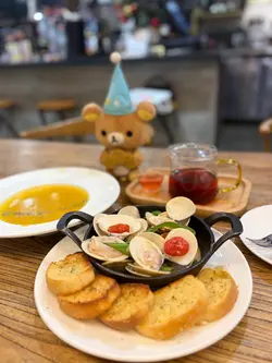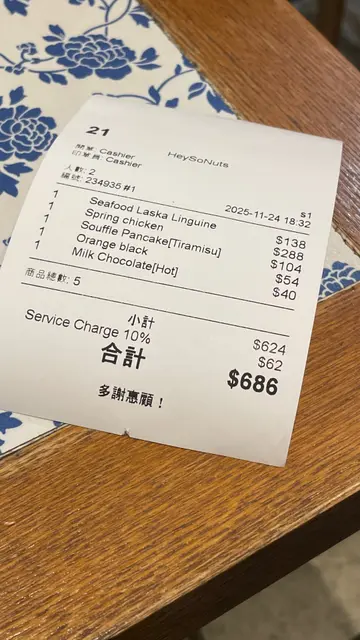 HeySoNuts是區內人氣咖啡廳,提供放鬆的氛圍。咖啡吧檯的設計,加入工業風元素,吧檯上擺放咖啡器具,及聖誕節日的裝飾品,感覺充滿活力。座位區域寬敞,背景音樂輕柔,在品嚐咖啡的同時,享受這份寧靜愜意。白酒煮蜆配蒜蓉包 138蜆肉肥美圓潤,經過白酒提味,肉質鮮嫩,帶微微的酒香。香脆的蒜蓉包,洋溢牛油香酥味道,沾上白酒汁,美味吸引。南瓜忌廉湯58濃郁滑順的南瓜湯,自然甜香融合了忌廉,醇厚的口感,帶來溫暖的享受。喇沙汁海鮮扁意粉 138濃烈的喇沙醬,充滿椰漿的滑順,淡淡辛辣,鮮味十足。海鮮有魷魚圈、大蝦及蜆肉伴碟,蝦肉彈牙,魷魚有嚼勁,每口伴隨著鮮香。手打雞肉蝦漢堡配薯條 138漢堡層次飽滿,夾著厚身的手打雞肉蝦堡,香脆可口,配合千島醬,口感濕潤。新鮮炸起的薯條粗身,入口熱辣辣,香草點綴下,滋味停不了! 提拉米蘇日式疏乎厘班戟 104軟綿綿的班戟,融入了提拉米蘇的咖啡元素,空氣感十足。表面鋪上可可粉,奶滑輕盈,入口醇厚的咖啡酒香,甜而不膩,讓人難以抗拒。玫瑰蜜桃果茶48果茶洋溢淡雅的玫瑰香,蜜桃的甜味清爽,飲瀰漫著濃郁桃香,滋潤暖胃。…查看更多