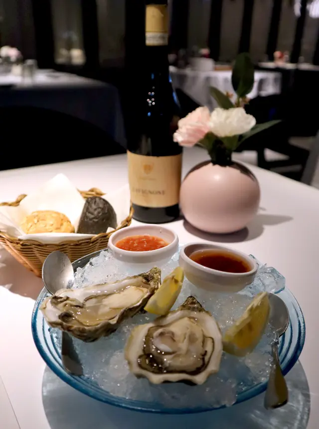 以前位於中環的Hollywood 49法國餐廳由於大廈被收購而被迫搬遷,現今遷至灣仔杜老誌道樓上舖已一年多,當然亦有不少老客戶捧場。餐廳裝潢走法式優雅路線,燈光昏暗,每枱都有點上蠟燭及花瓶擺設,氣氛浪漫,最啱和honey來撐枱腳。Menu的選擇很多,我們結果還是選了$988 + 10%的5-course二人套餐,包括有法國生蠔、前菜兩款、招牌魚湯、主菜一款及甜品,當然上前菜前也有兩款自家製麵包,及包括咖啡或茶,所以份量而言是相當豐富,結果部分前菜及主菜都吃不完要打包。Fine Dining當然少不了品酒,經理Sunny很nice又健談,原來他本身也是Sommelier,特別推介我們選了來自意大利的Pico Maccario Lavignone紅酒,此酒愈飲愈香濃,跟主菜血鴨也很配,真的沒有介紹錯!頭盤是法國生蠔,口感crispy,新鮮且海水味濃。然後服務員即端上新鮮烘焙的自家製麵包,麵包很鬆軟,塗上牛油更香口。而自選頭盤兩款是黑松露雪魚茸,將雪魚茸塗上薄薄的法包上,啖啖鮮味,但不會太咸,帶少少松露香。另一道菠菜帶子意大利芝士,菠菜上有鮮帶子配mascarpone,帶有淡淡的鮮味。招牌法式魚湯亦非常鮮甜,充滿了海鮮的味道,值得一試。主菜是法式血鴨,這道菜比較少地方食到,鴨肉呈粉紅色,肉質鮮嫩,口感與牛排相似,主菜是二人份量,有鴨腿及鴨胸肉配菠菜,配上特製的茨汁鴨香味更突出。最後是手製甜品碟,主角是Earl Grey芝士蛋糕,配三款不同口味的馬卡龍及冰凍的雜莓,擺盤像一幅繽紛的圖畫,吃到這裡已不知不覺地過了兩個多小時,美酒佳餚,是令人非常滿足的一餐。…查看更多