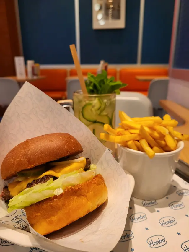 Honbo 呢間2020 年入選亞洲 Top 13 嘅手工 Burger 店,牛肉係由威斯康辛州入口美國牛肉,每日新鮮製作,肉質 juicy 牛味濃郁~ 連 pickle 都係由日本黃瓜自製醃製而成~誠意十足Honbo - 2x crispy beef, Cheese, Pickles, Onion, House Sauce - 係佢哋嘅 signature, smashed burger 嘅肉餅比較薄身,不過有兩片所以都唔會好削,呢款嘅口感會比較焦香帶點脆~Cheeseburger - Thick beef, Cheese, Pickles, Onion, Lettuce, House Sauce - 有埋生菜口感會更加清爽,神奇哋係完全唔會油膩Cheese fries (嗰日無曬 tots 有啲失望... ) Cheese 味好鹹香,薯條雖然油身但唔會好腍,又係一個係無得出錯嘅配搭Chili Crunch Brussels Sprouts 脆辣椰菜仔,神奇哋食落帶點老乾媽嘅風味海港城呢間分店仲有海景相伴~唯一係價錢偏高,平均都要200一位唔算好親民 (不過都真係好食過五人同 SS嘅)…查看更多