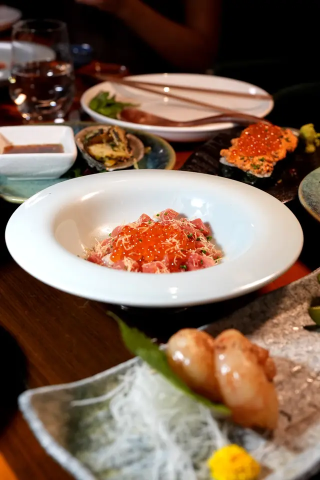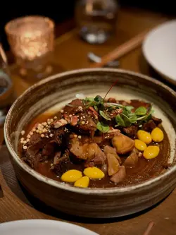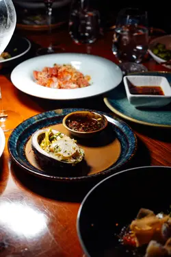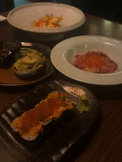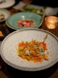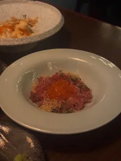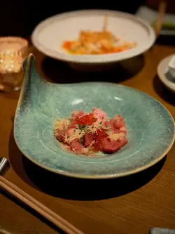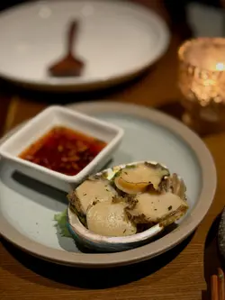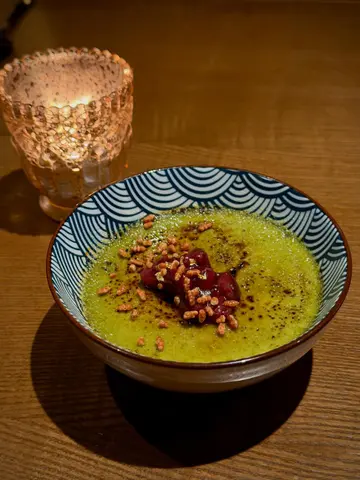 最近留意到《黑白大廚》料理狂人尹南魯及香港fusion菜餐廳Honjo嘅主廚Kyle聯乘推出4 hands晚宴!黑白大廚熱潮席捲全球,連帶實力派嘅料理狂人都號召力十足🔥Honjo推出嘅 hands晚宴供應至11月尾,而17-19/10就有料理狂人率先現身,好彩比我book到,更可以同兩位大廚合照,好開心🥰我睇開料理狂人做韓綜《拜託冰箱》固定嘉賓,一直都想試試佢嘅手勢😛今次呢個限定menu每位$588,每道菜普遍都唔錯,好多都用上新鮮海鮮,性價比幾高。不過我食嗰晚比較full,餐廳分兩輪,上菜較快,感覺匆忙咗啲😂4 Hands Menu $580pp前菜🫛烤日本枝豆、醬油甜蝦刺身簡單嘅開胃前菜,枝豆加入煙燻麻油、海鹽及海苔,味道幾香。甜蝦則只用少許海苔油及大豆鵪春蛋黃調味,突出本身鮮甜味😚小吃🍣辣味吞拿魚他他、鮟康魚肝細卷吞拿魚他他混合赤身、三文魚子、切絲麵糰等,麵糰做成薄脆,豐富菜式口感,不過辣味就唔係好覺。另一道鮟康魚肝卷,驟眼睇以為係海膽🤣入口都幾軟滑甘香😙加入柚子醋啫喱增添味道層次。🐚帆立貝熱情果、牛油香草鮑魚鮑魚彈牙兼好向牛油香草味,幾突出😋帆立貝則幾鮮味,加入咗熱情果虎奶醬、刁草及法國芫茜等香草,酸酸咪咪幾醒胃👍🏻主菜🐟牛油咖喱銀鱈魚呢道菜係料理狂人呈獻嘅招牌菜,銀鱈魚皮脆,魚肉超級嫩滑鮮味😋醬汁帶點鹹香及香料香,混入酸豆增添層次,雖則唔係好食到咖哩味,但整體嚟講味道都幾出色🫶🏻🥩栗子燉牛肋條牛肋條份量十足,連住筋位,可以食到筋位漿口嘅感覺兼牛肋肉啖啖肉嘅肉感😽我就覺得可以再腍啲,不過鍾意有咬口嘅都ok。牛肋條炆得好入味,醬汁鹹甜富層次。面頭灑上不少脆米,提升口感👏🏻🦞熱石龍蝦尾 +$78呢道菜有韓式石鍋飯嘅感覺,趁熱將飯、龍蝦尾及配料拌勻,一邊拌一邊聞到濃濃嘅牛油香😻龍蝦肉鮮甜彈牙,飯帶點飯焦,加上恰到好處嘅配菜,整體味道口感都幾出色😋甜品🍨黃豆粉最中、抹茶焦糖燉蛋估唔到甜品好出色,起咗畫龍點睛嘅作用🌟黃豆粉最中用薄脆嘅最中餅夾住黃豆粉雪糕,雪糕軟滑富黃豆香,裡面有不少雲尼拿籽,香味十足👏🏻焦糖燉蛋亦係上乘之作,薄脆焦香嘅焦糖加上甘醇嘅抹茶味以及唔太甜嘅紅豆,配搭出色😋推介指數(10分為滿分):8分…查看更多