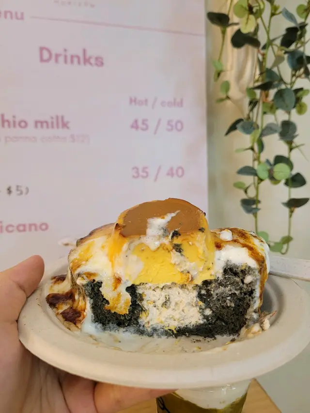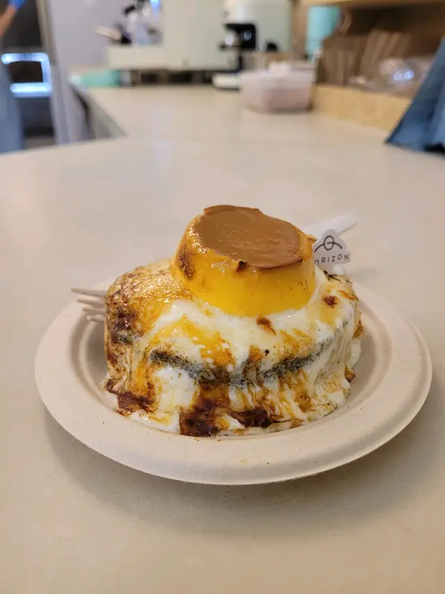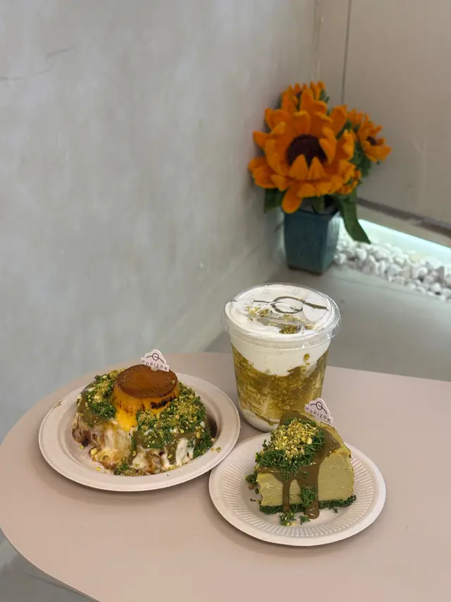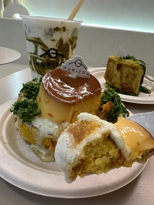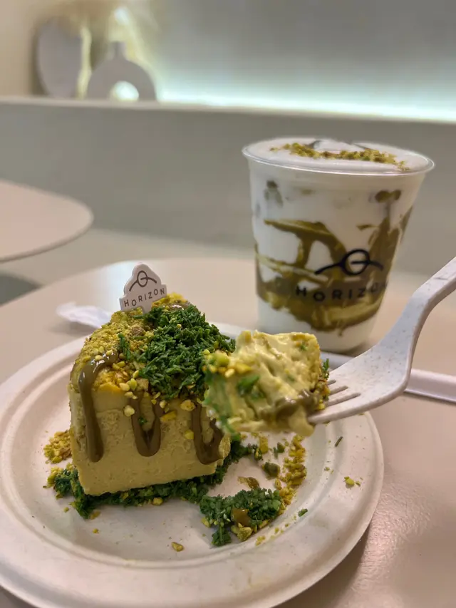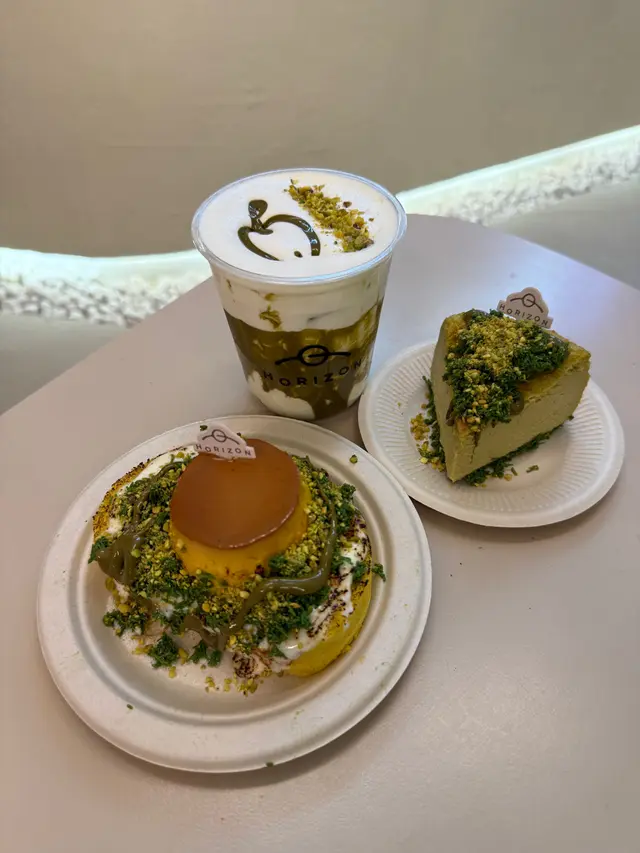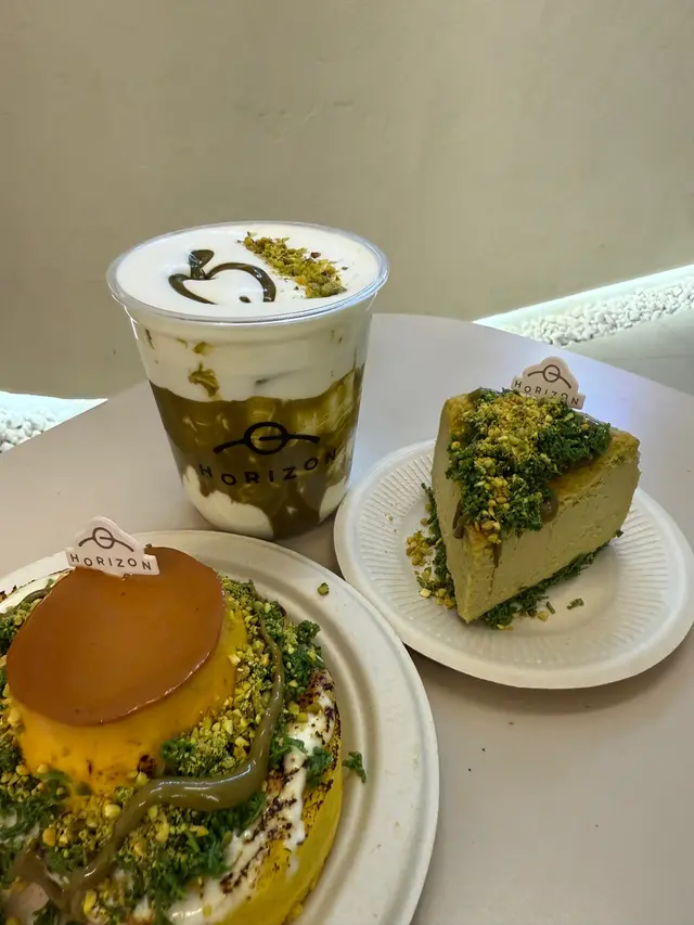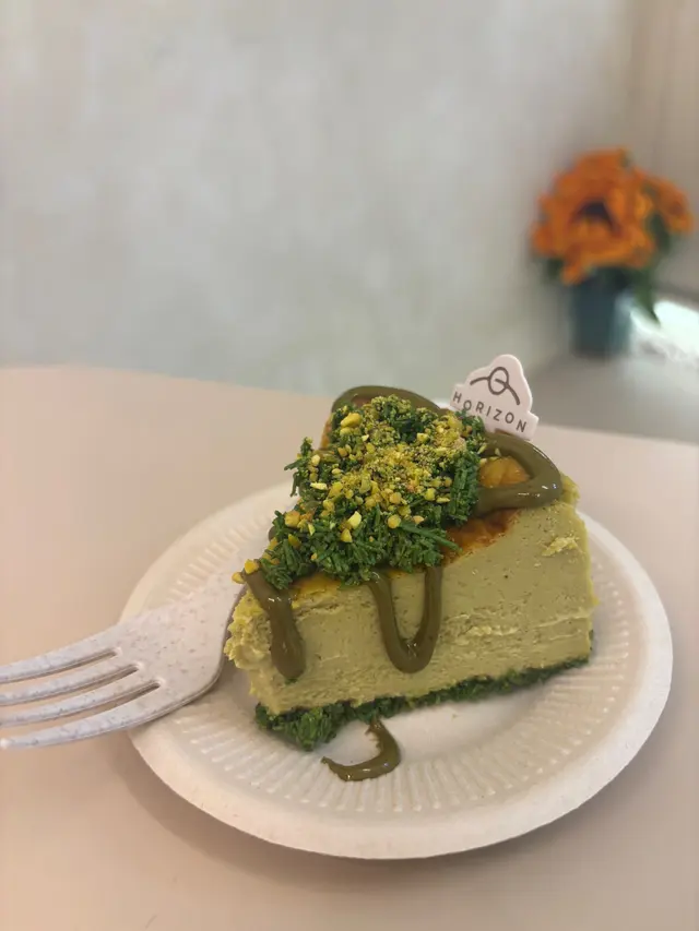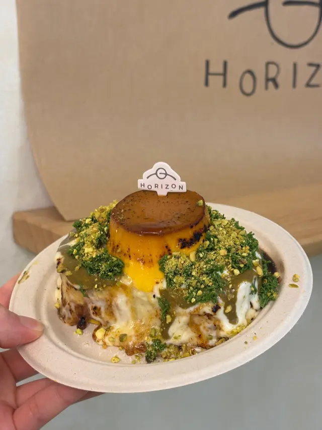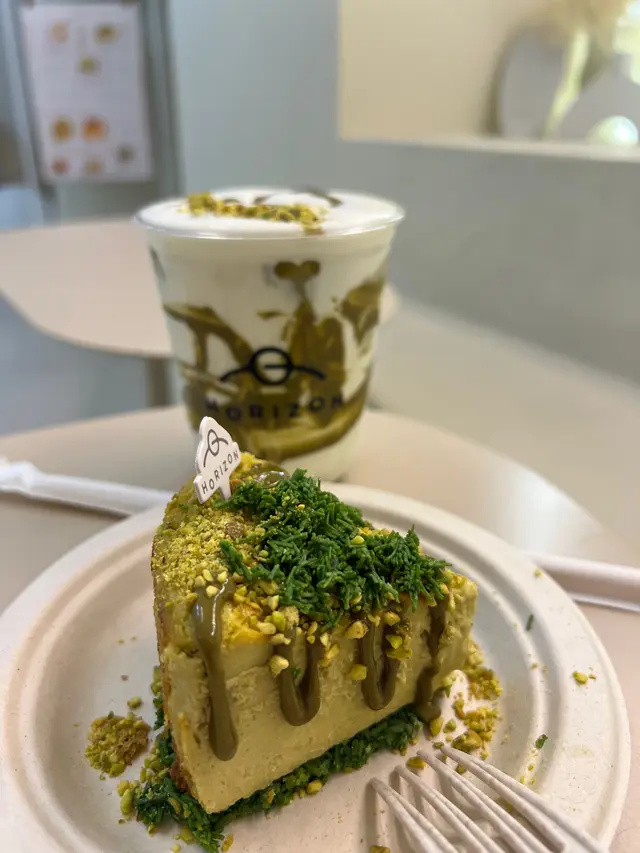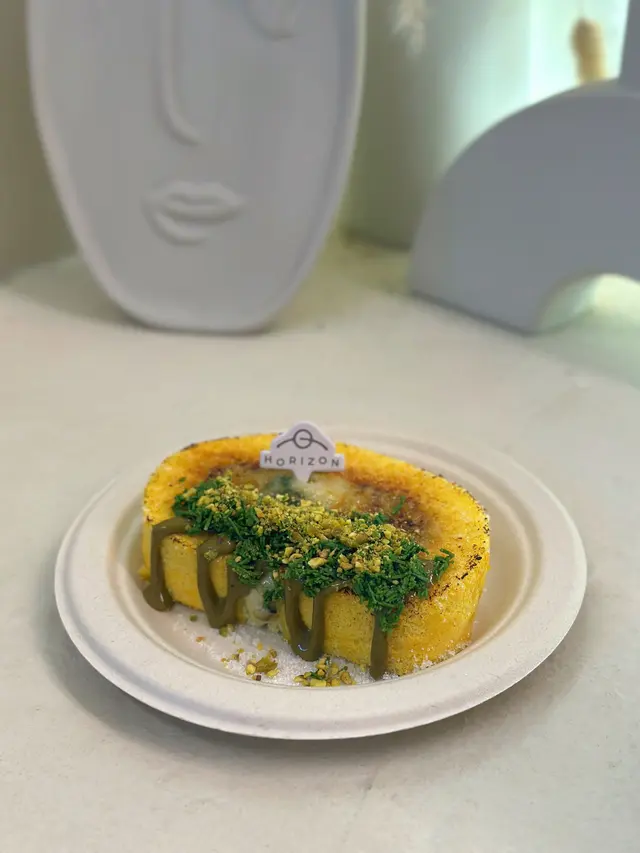 觀塘工廈呢間高質甜品店開心果控一定要試!開心果軟心芝士配希臘酥皮絲餅底芝士蛋糕超軟滑,綿密濕潤,開心果味係好濃郁!唔會好甜!餅底係開心果脆酥皮絲!好特別!面頭再放上滿滿嘅脆脆同香烤開心果碎好有層次感Kataifi開心果仁麻糬卷蛋($52)(+$28配焦糖雞蛋布丁)焦糖雞蛋布丁可以加配係任何自選卷蛋上面(原來堂食會有焦糖面焦糖布丁蛋味超濃,仲見到啲雲呢拿籽粒粒面頭仲有即場炙燒既焦糖脆面、夾埋開心果仁麻糬卷蛋同埋開心果cream估唔到好夾!開心果牛乳記得一定要攪均先!側邊勁多開心果醬掛杯,攪均之後每啖都有開心果味飲落仲有粒粒嘅開心果碎,而且唔會好甜好膩,好好飲!📍Horizon (觀塘)觀塘開源道55號開聯工業中心A座7樓07室…查看更多