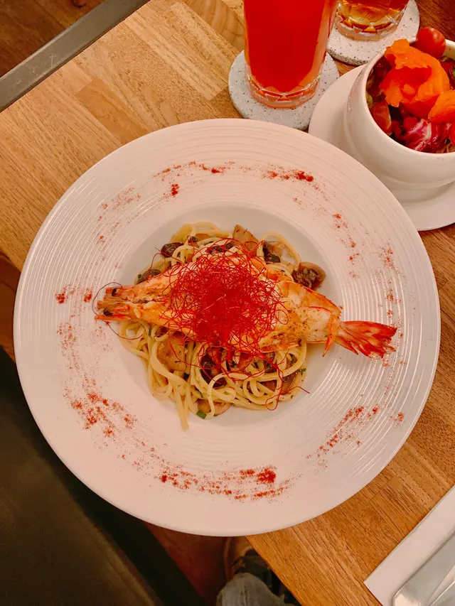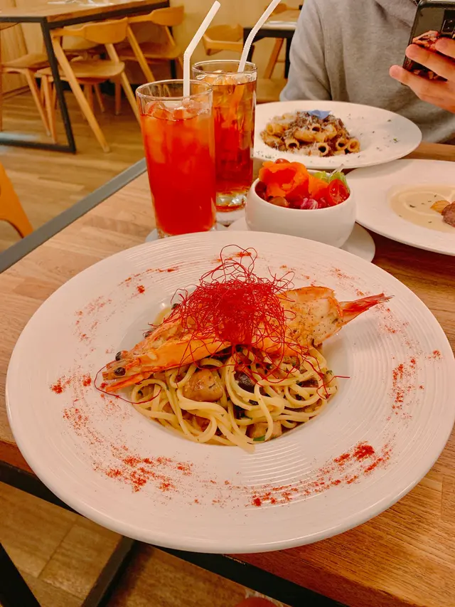 宋皇臺依間「Hosea」嘅室內裝修主打木系風格,配合埋柔和嘅音樂,餐廳氛圍都幾舒服,餐廳推出Dinner Special優惠,顧客惠顧主餐牌內任何意粉或主菜,加$30即可享煙三文魚沙律或是日餐湯,以及一款指定特色飲品,略嫌餐牌單點食品定價較高。*此餐廳收取加一服務費。扒虎蝦天使麵龍蝦汁車厘茄(單點$218),表面鋪有辣椒絲,虎蝦肉質爽口,味道鮮甜;天使麵口感軟硬適中,略嫌龍蝦汁口感稀身、味道未夠濃郁,內有雜菌、香葉,略嫌沒有車厘茄。慢煮牛面頰粗管通心粉配巴馬臣芝士(單點$188),表面鋪滿即刨巴馬臣芝士絲,牛面頰肉肉質嫩滑,牛味濃厚,略嫌肉質太過細碎,粗管通心粉容易掛汁。煙三文魚沙律(跟餐$30),玫瑰花型煙三文魚口感厚切,食落煙燻味道厚重,沙律菜包括有紫椰菜、羅馬生菜、苦菊、車厘茄,配以意大利油醋汁食用,味道清爽。是日餐湯(跟餐$30),蘑菇忌廉湯,表面鋪有炸脆片,口感Creamy,內有蘑菇粒。西柚冰茶(跟餐$0),茶味濃香,味道酸甜。荔枝冰茶(跟餐$0),味道清甜。…查看更多