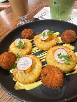 .小清新木系cafe 舒服得黎野食又好味😋.🌟煙三文魚🍣薄切三文魚切得極薄 但份量不少配上清脆的醃蘿蔔和微酸的香橙🍊忌廉汁層次超豐富 吃一口就醒胃.🌟日本🇯🇵豚肉扒🐽選了日本豚 肉質果然嫩厚切但完全不柴 外層煎得微焦香 肉汁鎖得很好🐷醬汁偏日式照燒風但再輕一點 不會太甜 👍🏻👍🏻.🌟Six cheese pizza 🍕六種芝士🧀🫕聽起來很heavy但實際吃起來意外地不膩薄餅皮是薄脆羅馬風 芝士🧀有拉絲架兩個人分食岩岩好😌.🌟Floating fantasy 🍸特色咖啡☕️幾fizzy 推介!咖啡加上菠蘿汁🍍真係好清新🥹.🌟巴斯克Cheese cake 🍰 去cafe點甜品係常識吧☺️Cheese cake 難得濃郁但不會太重底下一點點檸檬香🍋good ending ☺️☺️.Cafe走精緻西式路線味道👅整體清新優雅行出去係木系傢俬店🛌🪑食完逛逛幾治愈❤️🩹.📍尖沙咀河內道18號K11購物藝術館2樓201-01號舖.…查看更多