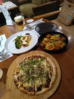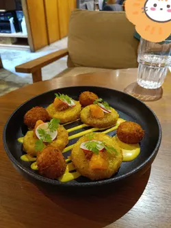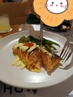 同friend食dinner梗係要搵間chill啲嘅cafe!😎暗黑木系裝修配暖黃燈,枱同枱唔會太逼,傾計啱晒😽。影張全家幅先📸炸蟹肉球拼薯餅配蜜糖芥末醬及蕃茄醬🦀🍯🍅炸蟹肉球🦑一咬「咔嚓」聲,入面係絲絲蟹肉,點蜜糖🍯芥末醬好夾。照燒三文魚180克.西蘭花.扒茄.三文魚子荷蘭汁🐟🥦🍅🫛照燒三文魚🐟皮脆肉嫩,三文魚子喺口裡爆開好過癮!日式照燒雞.洋蔥.蘑菇.蛋黃醬.青蔥.紫菜🐔🧅🍄🟫日式照燒雞🐔嘅蛋黃醬浸住滑溜雞肉,仲有紫菜脆脆地,口感一流👍。開心果巴斯克芝士蛋糕配咖啡忌廉食到咁上下,個開心果巴斯克蛋糕不得了!流心質地加咖啡忌廉,甜得嚟唔漏。叫咗兩杯signature🍹🥃——Floating Fantasy🍹似成人版益力多,咖啡泡襯菠蘿汁好清新,Spicy Margarita🥃杯邊沾咗辣椒粉,飲落先甜後辣超刺激。呢餐真係滿足到呢,環境同食物都咁IG-able📸📸,下次慶祝一定再encore!--How To Live Well地址: 尖沙咀河內道18號K11購物藝術館2樓201-01號舖…查看更多
