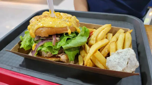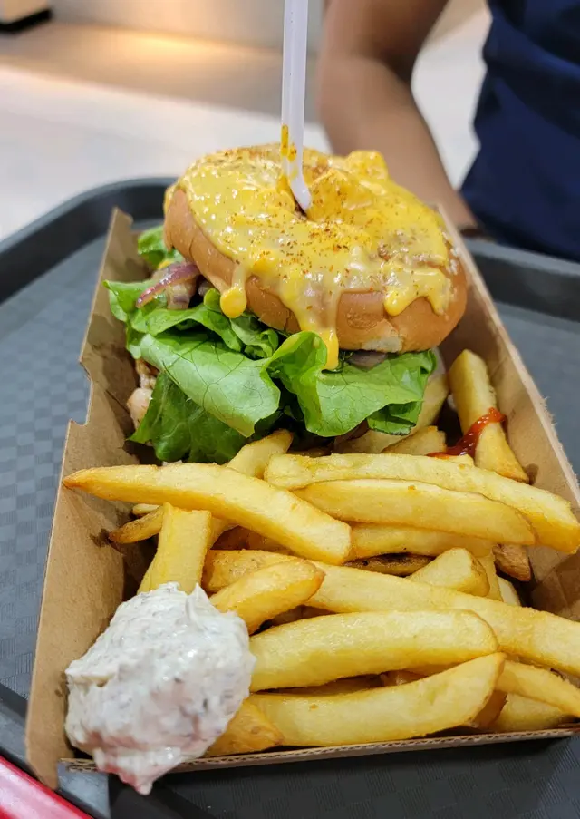 話說今日過嚟西九龍拎甜品,所以嚟咗8樓food court揾食😳 行咗一圈我俾呢間burger嗰裝修吸引咗😂 嗰裝修令我覺得好好食🤣我哋嗌咗嗰至尊二人餐 $178,會有兩嗰$55以下嘅包、兩款小食、兩罐罐裝飲品同埋薯條啲包如果貴過$55就要加$8,唔係加差額,呢個點就有啲奇怪🤔 不過我最終要咗芝士煙肉牛堡同埋芝士瀑布雞堡,我對佢嗰burger🍔係好讚的,嗰牛好juicy,包皮都有煎一煎,係好有心機嘅整法,依家好少見到有🌝 我嗰fd嘅瀑布雞煲,同想像中嘅一樣,我嗰fd勁中意佢啲芝士,仲教大家可以反轉個包皮拎起食冇咁論盡🤣佢嘅薯條同我想像中有啲出入,我幻想係想要outback薯條🤣 套餐加嘅小食,炸帶子都OK嘅👻 其他都麻麻😗😗食完係度睇返openrice啲食評,其實我覺得呢間小店都唔差,我下次都會再encore佢啲包🥰 老闆都幾好人🥰 註: 我星期六1515左右食😛 落完單老闆會再同你confirm食乜,因為張單打嘅食物同你嗌嘅有啲方別🤣…查看更多