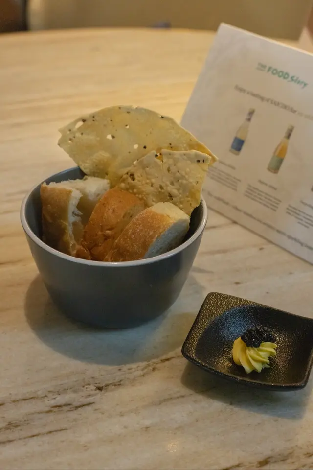 良友介紹,今晚一行6人到此飯聚,果然沒令人失望。餐廳菜色都在90分以上,服務更加接近100分。不得不讚的首先是餐前端上的新鮮焗製麵包、番茄香草包和印度papadam,熱辣辣加上butter with caviar ,好味到要加碼才滿足!我們大致點了6個2-3道菜的晚餐,前菜便有6選3的推介,滿足貪嘴一族。各樣前菜精美地放在帶乾冰雲霧的盤上,又好看、又好味。主菜無論是二人份的燒雞、素菜意粉或煎煮盲鰽,都全部被KO,連拌燒雞而上的risotto,都被友人刮個清光,不留下一絲遺憾😆。最後是現場即製的mini雪糕筒,vanilla雪糕上灑了魚子,小小的份量,滿滿新鮮感,為飯局畫上完美的句號!查看更多