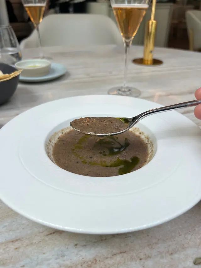 今日k先生帶我去食法國餐,我哋簡咗dinner set同caviar set各一,試曬佢個dinner menu😆,前菜各有特色,都幾開胃。我最中意steak tartare 同foie gras with cocoa,後者開頭入口以為自己食緊朱古力😆k先生就最中意個蝦tartare~海鮮湯啖啖都有滿滿嘅蟹肉~意粉portion就唔算多~以set嚟講岩岩好~淺嘗😋主菜試咗紙包魚同三黃雞~魚好有特色,魚湯吸曬啲魚同蔬菜嘅味。隻雞超好味!!!有啲位燒到有焦糖香味,皮都有脆位,雞肉好嫩滑,下面個risotto 底勁正,吸曬雞油同啲蔬菜味,口感仲好彈牙😋😋😋!我哋加咗2枝sparkling tea,值得一試!無飲酒lu,聽日要翻工😆餐廳個vibe好舒服,service都好好~可能會為咗隻雞再嚟😋查看更多