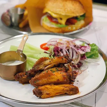 烤美式水牛城單骨雞翼 配藍芝士醬單骨雞翼就不過不失啦味道微辣 外皮都脆炸得偏乾!比較細隻不過幾鍾意個藍芝士醬😍唔會有嗰浸好強烈嘅藍芝士味反而係慢慢散發芝士香🧀幾正‼️仲有西芹可以點嚟食-值得一提呢度嘅Staff真係好nice照顧到客人需要之餘仲會關心客人去食物嘅口味👍🏿真係好值得去支持下💛…查看更多