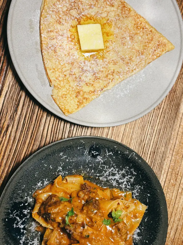 發掘到一間性價比高嘅西餐廳,以後食早餐又多個選擇,12點前有早餐送咖啡,幾抵食🥪又是全日早餐同平時食開嘅全日早餐唔同,呢度有法式薄餅,有薯片做成嘅薯餅,蛋餅,淨係呢三樣已經好吸引又有新鮮感,如果法式薄餅可以配甜就好了,例如榛子醬,牛油糖漿咁🥪黑松露蜜汁配金文畢意式烤豬肉片酸種麵包賣相幾靚,味道都唔錯,酸種麵包脆脆的有咬口,烤豬肉片望落好肥,食落又唔係喎,甜甜地幾好食,比想像中出色☕️🍵跟餐叫左黑咖啡同加$10嘅抹茶牛奶,抹茶味幾濃,入口順滑,唔錯想去記得訂位,星期六日早上都幾full …查看更多