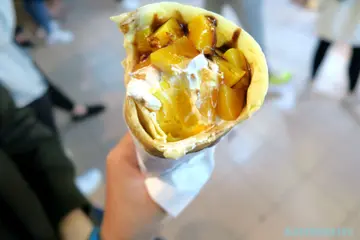 見到做到十四號就結業,諗住去試一試出名既焦糖布甸班戟,見到個樣幾靚就想去試下,話係原個布甸倒落去好有趣。黎到見到超級多人圍住,去到見到個餐牌整到成個IG樣咁好有心思,但係我地六點去到,可能大家見到報道佢就黎結業都湧去食,三隻特別款都已經賣哂。諗住就結業都試下普通款《水蜜桃雪糕班戟》($26),揀左芒果雪糕放中間,都幾香芒果味,上面放滿水蜜桃,不過班戟皮太淋身,真係可能得三隻特別款可能較出色。店名:I Love 戟 - 日式班戟專門店地址:西灣河筲箕灣道57-87號太安樓地下55A號舖餐牌:…查看更多