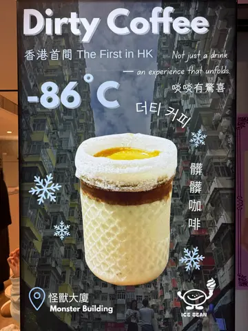 鰂魚涌有個怪獸大廈,係香港其中一個獨有嘅打卡勝地。呢度開咗唔少小店,今日就嚟試一間高人氣Cafe。呢度最出名嘅,就係佢哋嘅-86°C Dirty,我哋當然要叫嚟試吓。上枱嘅時候,見到杯邊結咗一層冰霜,店員話立即品嚐係最好嘅。飲落去首先飲到Espresso嘅咖啡香味同小小苦味,然後再混埋好香奶味嘅秘制牛奶,加埋冷熱交融嘅感覺,成杯飲品令人覺得好舒服,真係可以一啖就飲晒佢-86°C Dirty Coffee (可樂版)咖啡加可樂,聽起嚟好大膽,但其實飲落去有驚喜!加上用雪凍咗嘅咖啡杯飲,令口感更清爽。味道上,咖啡嘅苦澀同可樂嘅甜味氣泡碰撞出獨特的層次感。咖啡帶黎濃郁香氣,可樂則增添甜度加碳酸嘅刺激,其實似係咖啡風味嘅汽水,啱哂想提神嘅人,亦適合而家悶熱嘅天氣大眼仔雪糕👁️🗨️同呢個打卡勝地最配合嘅甜品,外表超級可愛。佢哋嘅雪糕好重牛奶味,超正,配上淡淡嘅抹茶粉同抹茶醬,味道好夾。最底層有granola 增加口感,每一粒都好脆,仲有酸酸甜甜嘅感覺。呢度店面唔大,都有三四張枱可以俾人坐吓,chill下。見到佢哋Menu上有好多選擇,而且間唔中都會有啲特色口味推出,好有心思同創意嘅小店👍🏻…查看更多