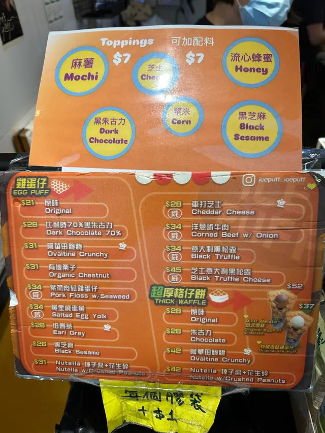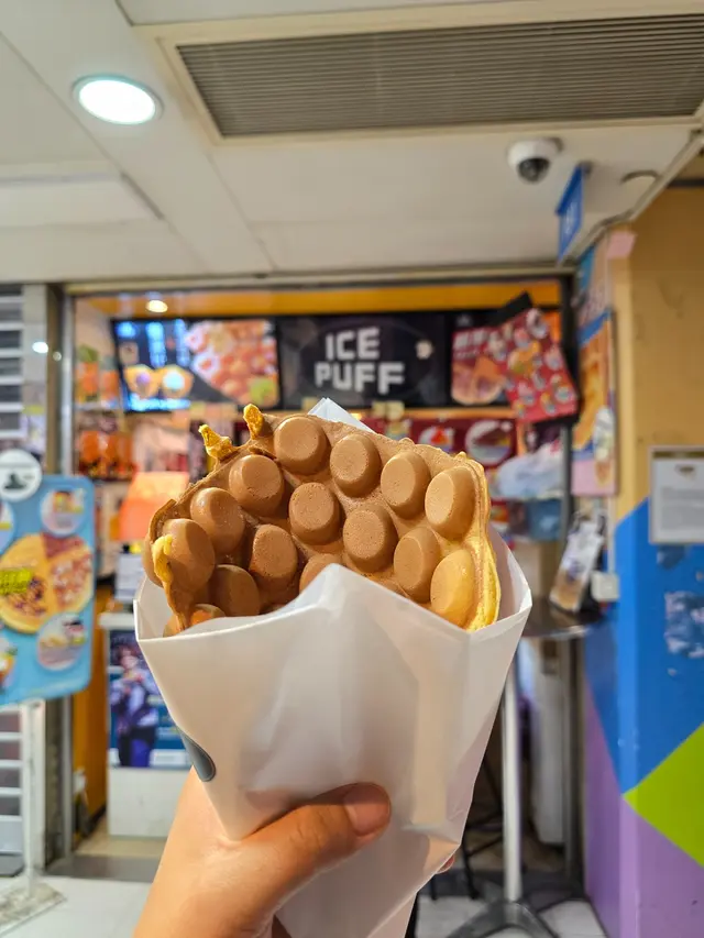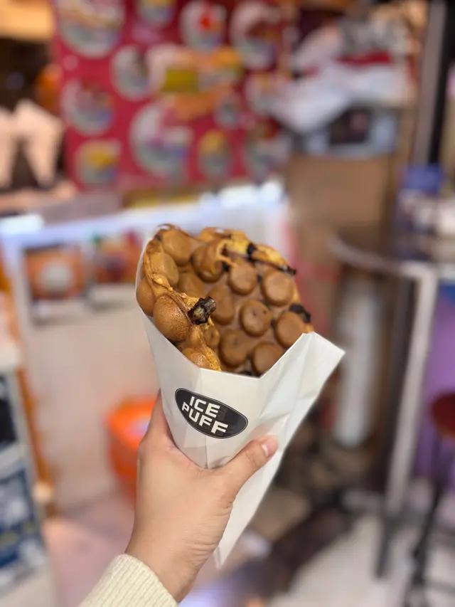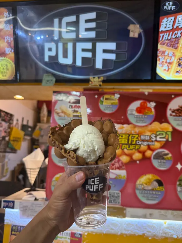 聽講呢間舖頭係香港十大好食雞蛋仔之中嘅一間,對旺角中心又有好大嘅信心,所以就滿懷期待地試咗呢間ice puff,但結果不如理想。今次試咗IG推介嘅阿華田雞蛋仔加麻糬,咬落去嘅第一啖雞蛋仔又冇蛋香又唔脆,成個雞蛋仔軟腍腍好似放咗好耐咁,阿華田味超級甜,令人覺得好膩,好似食緊糖漿,食唔到阿華田嘅真味,佢嘅麻糬都好令人失望完全唔煙韌,淨係得個甜字,外皮同中間都冇一個位係脆同煙靭,冇任何口感同咬口,整體嚟講對呢間嘢真係好失望,我個friend食咗都覺得太甜,成個雞蛋仔食咗兩啖就揼咗,真心講一句真係唔建議去試。…查看更多