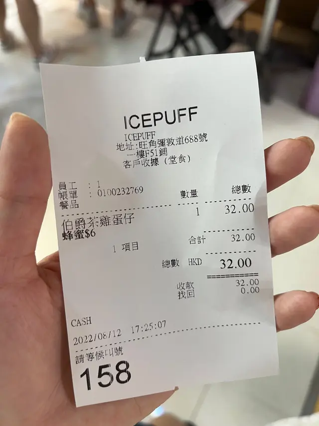 超好食雞蛋仔 beviswong08等級32022-07-14347 瀏覽 關注 去旺角掃街,第一站就嚟咗ice puff,好好彩,我哋啲嘢食做起嘅時候,張枱就有得俾我哋坐,可以慢慢食,唔使食得咁狼狽試咗兩樣嘢,原味雞蛋仔($20)同埋阿華田脆脆夾餅($39)呢度選用日本麵粉,所以識落啲雞蛋仔同埋夾餅都好鬆軟先講雞蛋仔,外脆內軟,好香蛋味夾餅揀咗阿華田脆脆,夾餅好厚,都係外脆內軟,好鬆化,個阿華田醬都甜嘅,但係配埋個上下層咁厚嘅夾餅,甜度到就啱啱好,咬到中間仲有啲脆脆,增加口感,好味…查看更多以上食評乃用戶個人意見 , 並不代表OpenRice之觀點。讚好分享超好食雞蛋仔 Ice Puff https://s.openrice.com/QrbT0iGb400檢舉 張貼 評分5味道4環境5服務4衛生5抵食用餐途徑堂食