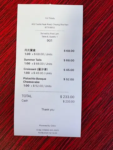 位於長沙灣的餐廳 I’m thirsty,以其獨特的飲品和美味的輕食而聞名,讓人一試成主顧。這裡的氛圍輕鬆舒適,非常適合與朋友聚會或獨自享受一杯好飲品。我點了他們的招牌飲品——Special Dirty。這款飲品的製作過程十分繁複,首先將全脂奶雪至結冰,然後再花上數小時進行溶解。這樣的過程使得牛奶中的水分被抽走,留下最精華的奶,讓整杯飲品的奶味格外濃郁。喝下第一口,滑順的奶香伴隨著咖啡的苦味,讓人感受到絕妙的平衡。接著,我品嚐了店內的另一款飲品——自家製的埃塞俄比亞冷沖咖啡 (HOMEMADE ETHIOPIA SOE),這款咖啡帶有淡淡的花香,讓人感覺清新。搭配上桂花冷沖咖啡 (MIX OSMANTHUS COLD BREW) 和茉莉花冷沖咖啡 (JASMINE COLD BREW),再加上一點桃汁,這組合簡直是夏日的完美解暑飲品,甜而不膩,香氣四溢。在輕食方面,我選擇了巧克力鬆餅 (Chocolate muffin) 和蘑菇粟米可頌 (Croissant with mushroom and corn)。巧克力鬆餅外酥內軟,濃郁的巧克力味讓人垂涎欲滴。而蘑菇芝士粟米可頌則是鹹香四溢,芝士的濃郁與蘑菇的鮮香相得益彰,每一口都讓人心滿意足。總結來說,I’m thirsty 無論是在飲品還是輕食方面都讓我驚喜連連。無論你是咖啡愛好者還是喜歡輕食的人,這裡都能滿足你的味蕾。強烈推薦給所有喜愛新鮮口味的人,絕對值得一試!…查看更多