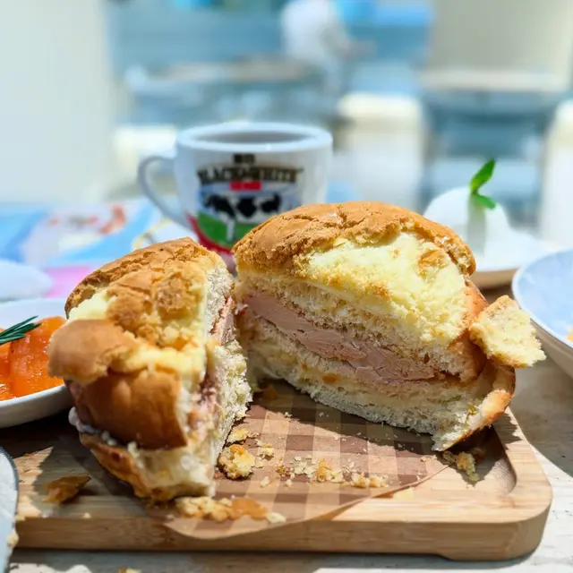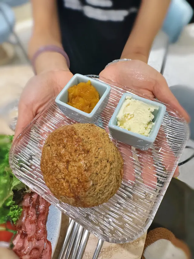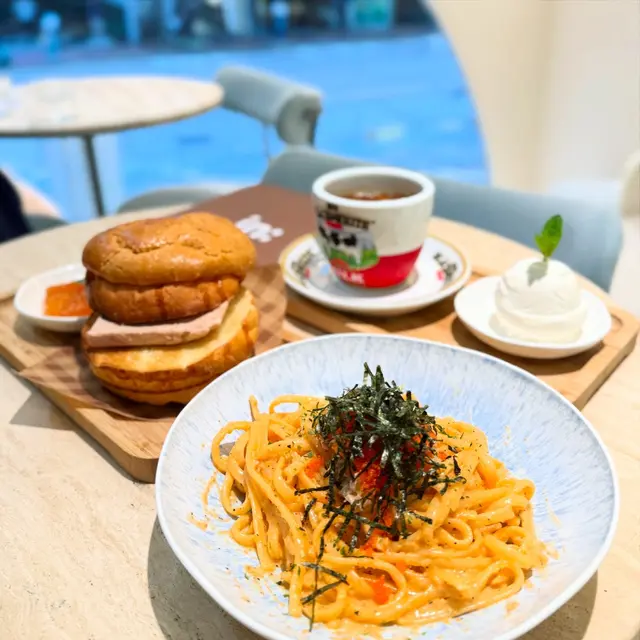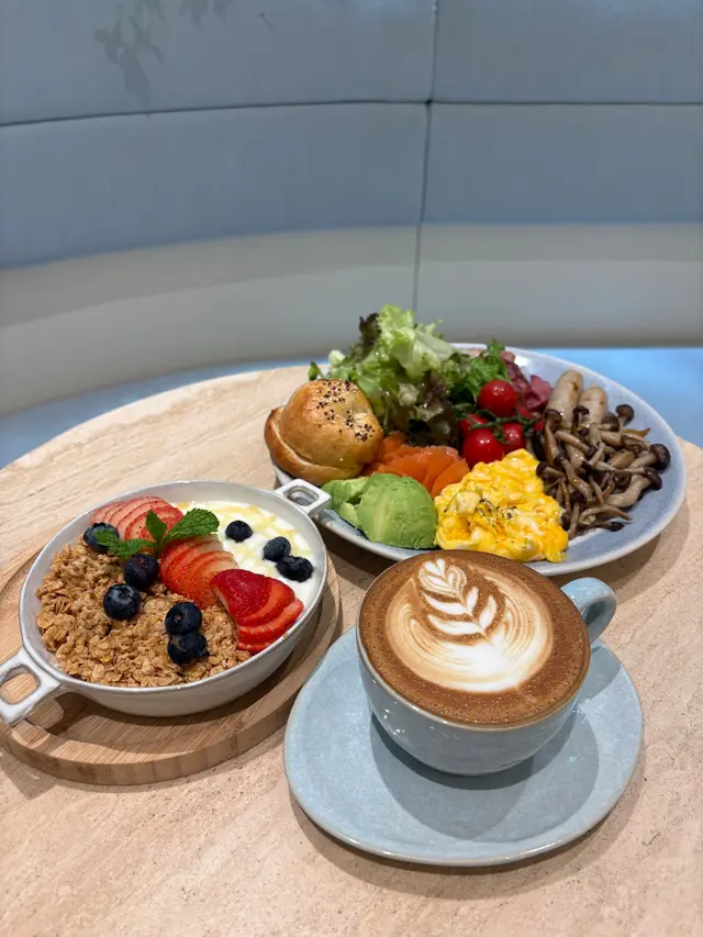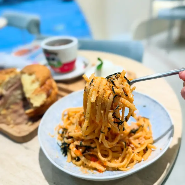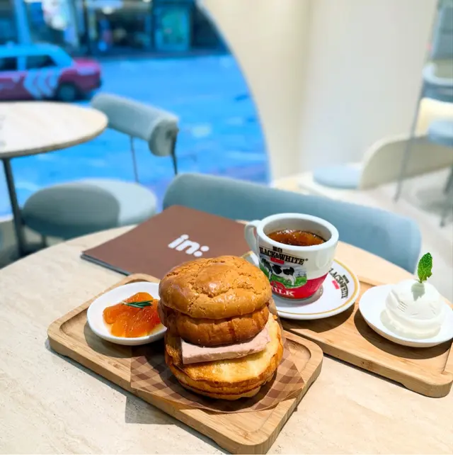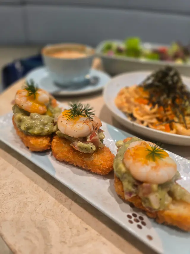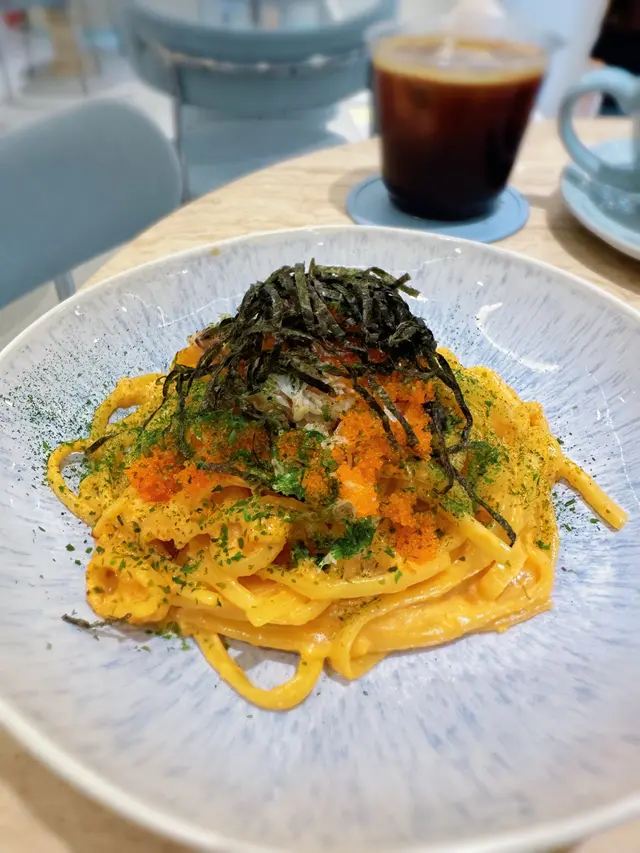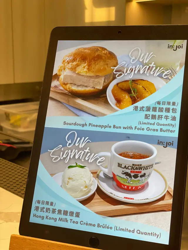 cafe-in:joi粉藍色為主調 , 門口一隻大熊陪坐, 亦係打卡靚位Flat White/Chocolate $44/65兩杯都有靚拉花. 前者應用而較深度烘焙嘅豆. Coffee Jelly Coconut Coffee $68較喜歡呢杯, 唔太飲得出Coconut. 反而好似大杯dirty. 漸層好靚, 較易入口. jelly 在底都係帶啡甘香完全唔甜芝士辣肉腸酸種貝果 $58貝果按落都有回彈, 食落唔算好煙韌. 餡料出奇地真係好夠辣, 除左辣肉腸中間同面都有灑Cajun 同辣椒粉, 個人覺得都唔錯朋友覺得太辣可能用sourdough 整bagel, 包本身都有味. 手工日本山藥雞肉丸焗意粉 $128見推薦, 自家製肉丸話係由新鮮雞肉同山藥調製, 口感比較鬆散. 長通粉配左好酸嘅番茄醬同芝士焗製, 芝士可拉絲港式奶茶Crème Brûlée $88是日MVP, 法式焦糖脆脆, 配合港式奶茶嘅香醇. 略有一點可惜可能太早去未雪夠, 奶茶燉蛋有點流體不過夠香滑又唔會太甜, 食哂@injoi.hk@media.vas灣仔皇后大道東141-145號恆山中心地舖…查看更多