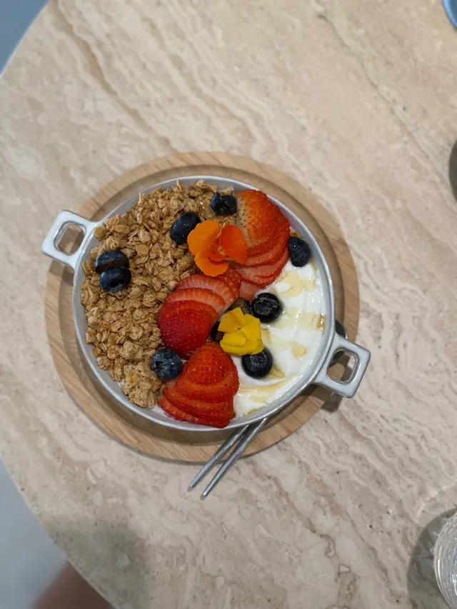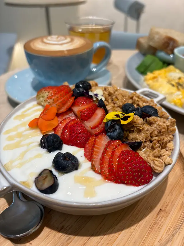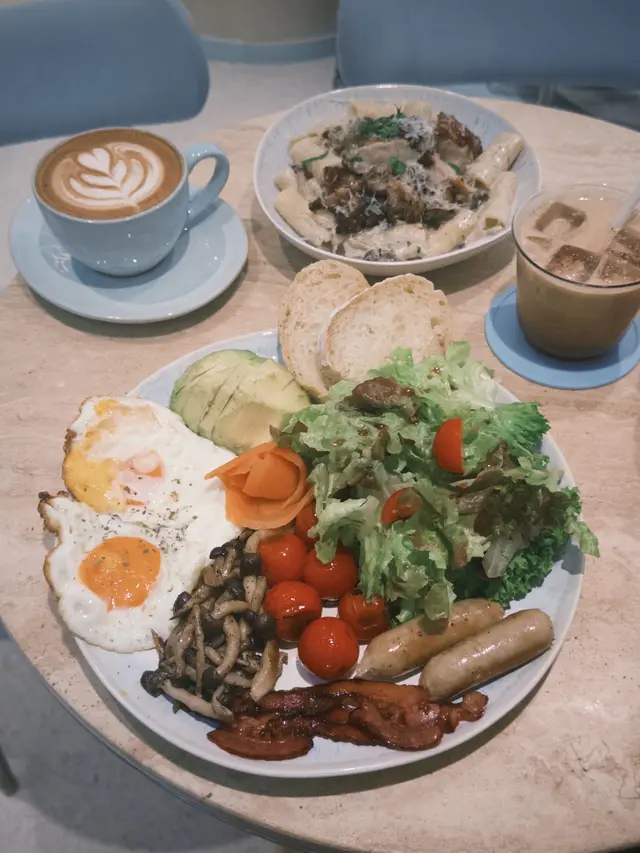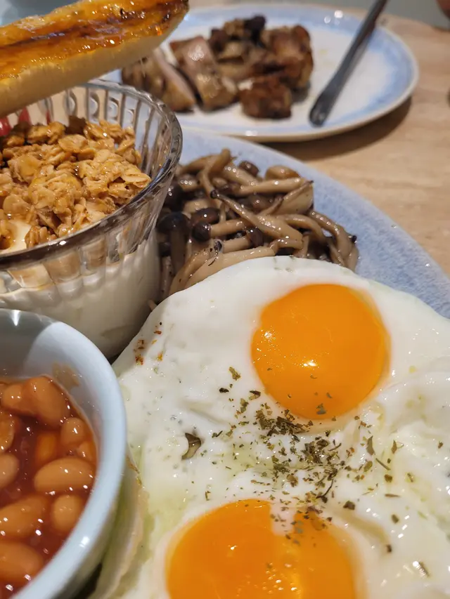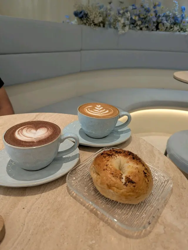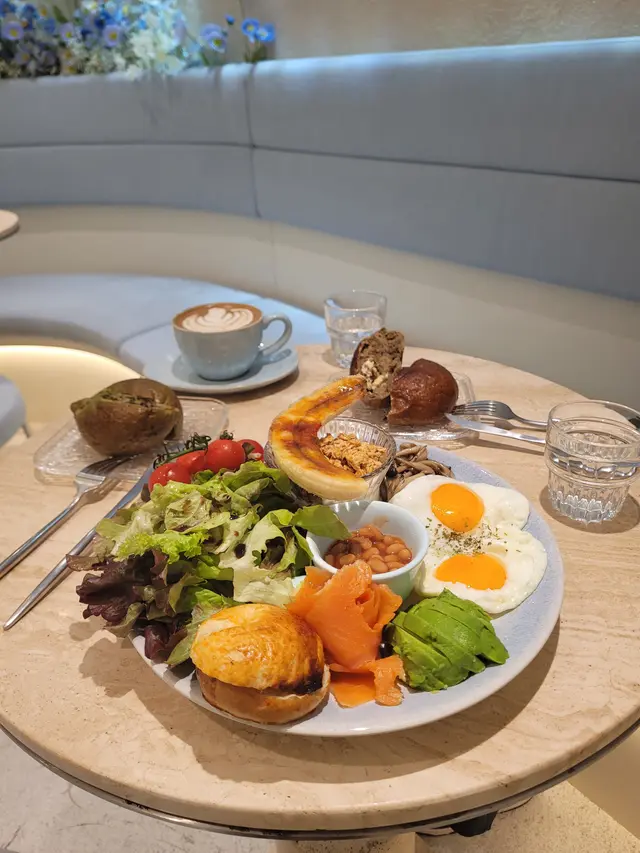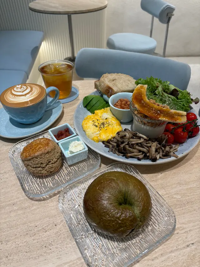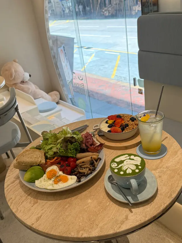 餐廳:in:joi (灣仔)地址:灣仔皇后大道東141-145號恆山中心地舖香港寸金尺土,好多餐廳都冇乜空間感,最近經過灣仔皇后大道東呢間IG-able Cafe——in:joi ,比佢哋嘅裝修設計所吸引咗而入去🤩打破傳統餐廳格局,喺門口已經見到in:joi擁有樓梯級座位,可以俾人坐喺梯級上食嘢飲咖啡☕️,顯然同出面灣仔鬧市形成對比,坐喺度零舍悠閒,梯級上仲有一隻巨型熊啤啤陪你打卡影相📸,一個人嚟都唔怕冇人陪啦🐻,唯一注意喺著短裙嘅女士要小心走光⚠️。上完樓梯仲有卡位同圓桌座位,餐廳行簡約風以白色同淺藍色為主調,有一種藍天白雲同光鮮嘅感覺☀️✝️香烤嫩牛排沙律 $128牛排控注意‼️,多汁帶有濃郁肉香又軟嫩嘅牛排條🥩,配埋新鮮沙律菜🥗、蕃茄、青瓜同紅洋蔥🧅,淋上特製醬汁,清新有層次,食完一啲負擔都冇😛✝️手工日本山藥雞肉丸焗意粉 $128呢款焗意粉好有心思💯,自家製雞肉丸有6粒,當中加入日本山藥,口感嫩滑有雞肉香,再配上香濃番茄醬同芝士焗粗管麵,雖然個人覺得鹹咗少少,但勝在有拉絲而且香味撲鼻,食落超滿足😌✝️黑碳雙層芝士貝果 $48芝士控必試🧀,竹炭bagel夾住熱溶馬蘇里拉同車打芝士🥯,鹹香濃郁熱辣辣,口感煙韌軟熟,配咖啡一流👍✝️港式奶茶焦糖燉蛋 $88甜品時間到🍮,港式奶茶融入法式燉蛋,敲碎脆脆焦糖面,就品嚐到淡淡奶茶香、用新紀元卵製成嘅燉蛋,入口綿綿即融,蛋香濃厚🥚,另外仲有一球幼滑嘅豆腐味雪糕🍨✝️Cappuccino $44用咗House-blend 咖啡豆,喺三個唔同國家嘅混合豆,有靚靚嘅拉花之外,有層次嘅Nutty風味加上奶泡嘅綿密細膩令人沒齒難忘🥳…查看更多