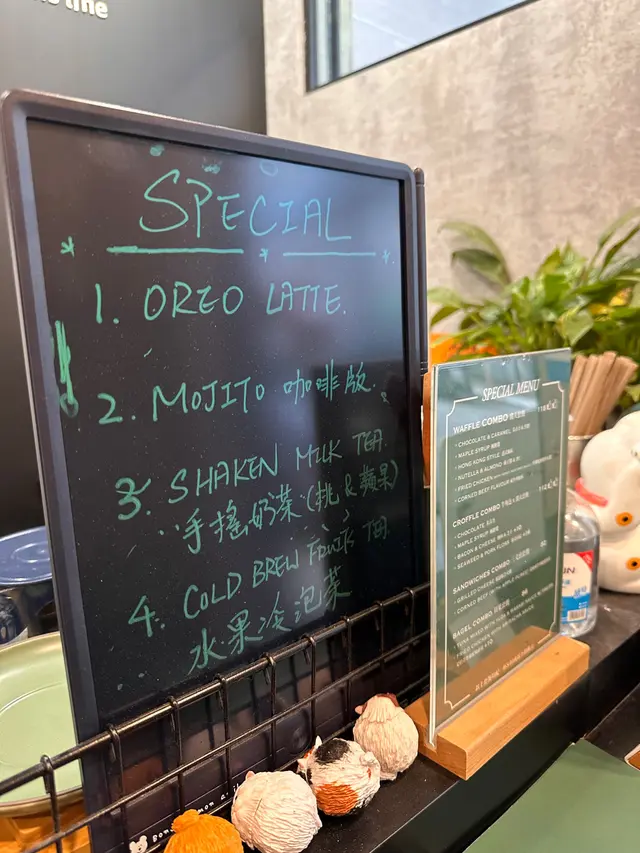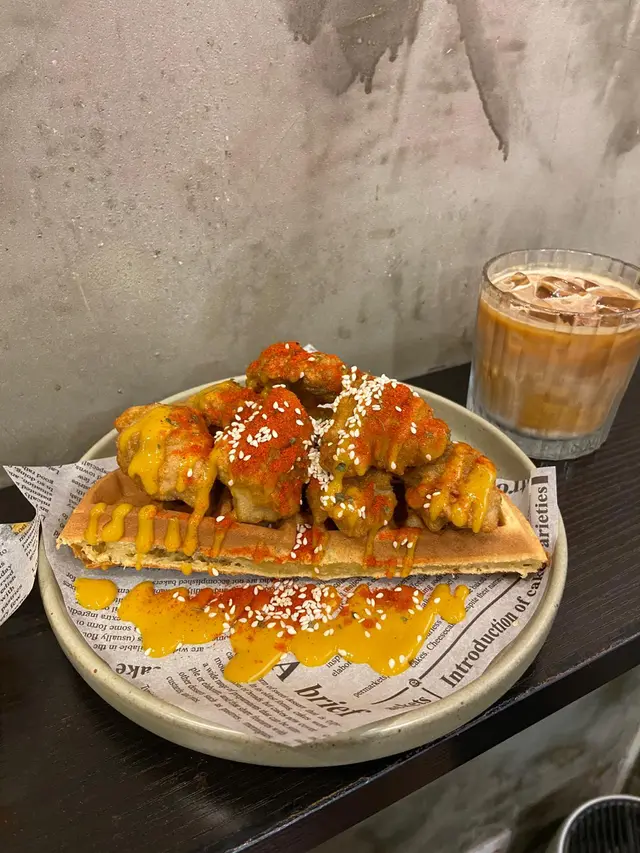 <炸雞配蜜糖芥末醬窩夫>窩夫上鋪滿炸雞粒 一啲都唔吝嗇👍🏼下面窩夫脆身 鹹甜嘅味道配合得宜😙值得一讚係炸雞外脆內嫩 keep到肉汁 仲有蜜糖芥末醬同七味粉調味 夠惹味😛.<Virgin mojito with coffee>係夏天special✨以espresso代替酒精 入面仲有薄荷 青檸同梳打水 十分之清新解渴~😊.<Matcha latte>用上小山園抹茶粉~抹茶味偏淡 但攪得均勻 無苦澀味(⁎⁍̴̛ᴗ⁍̴̛⁎)…查看更多
